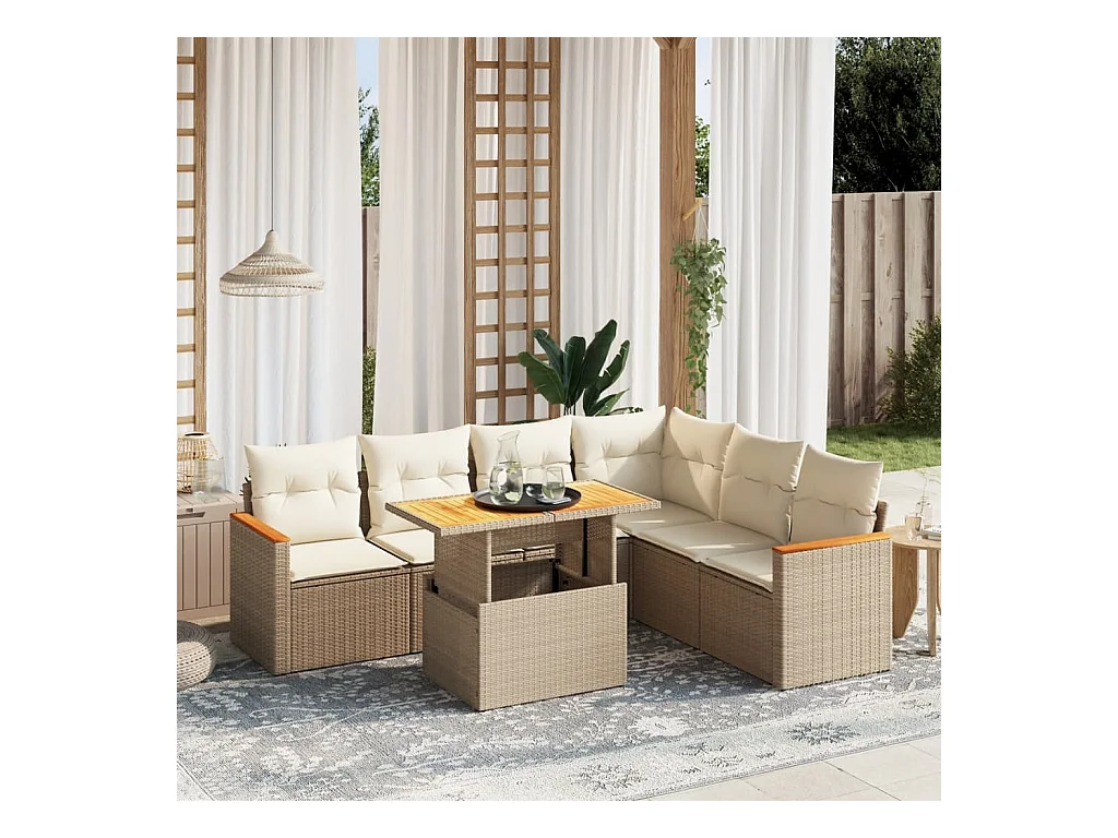 7-delige Loungeset met kussens poly rattan beige
