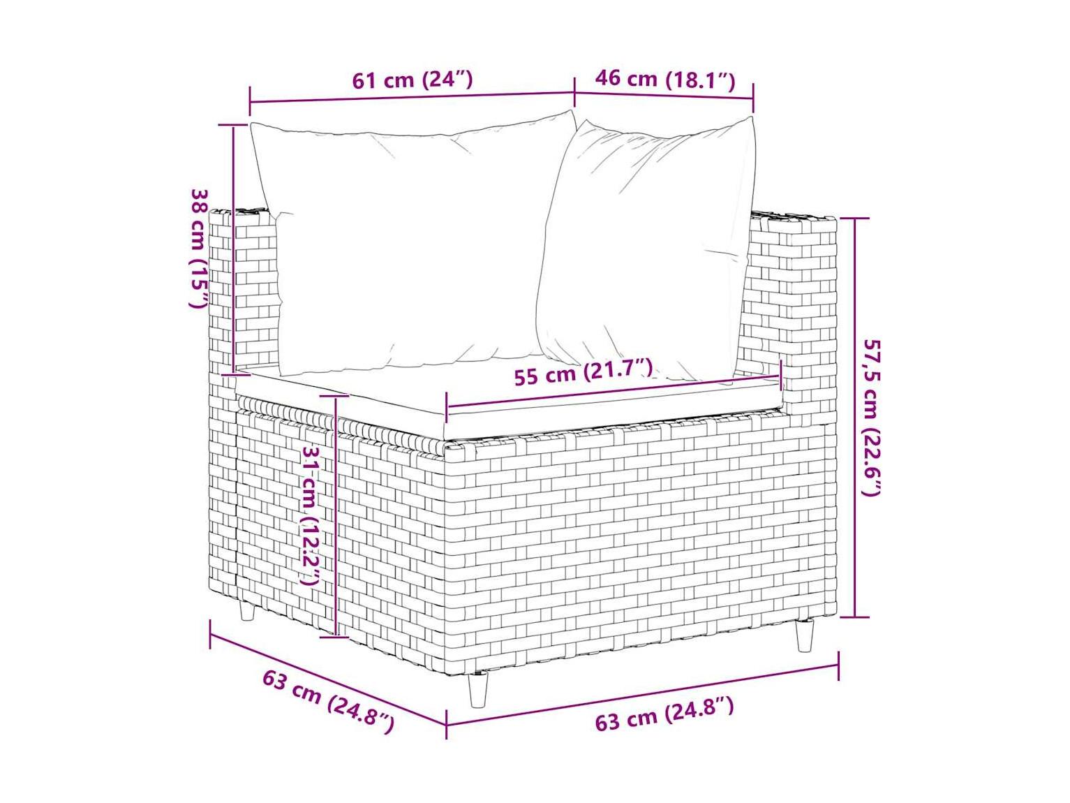 8-delige Loungeset met kussens poly rattan bruin