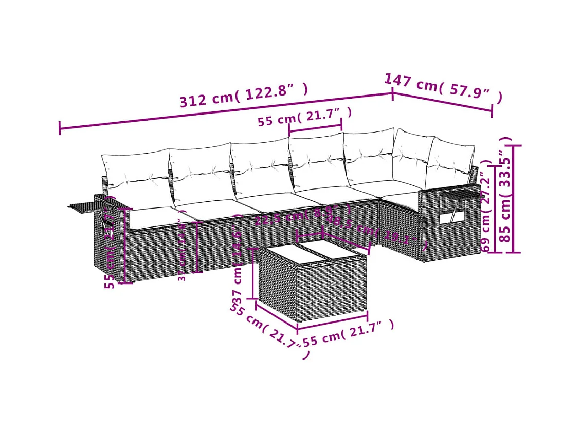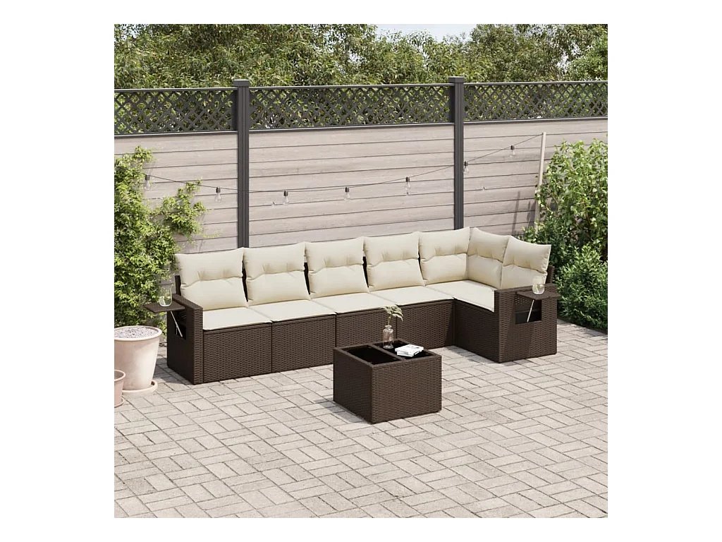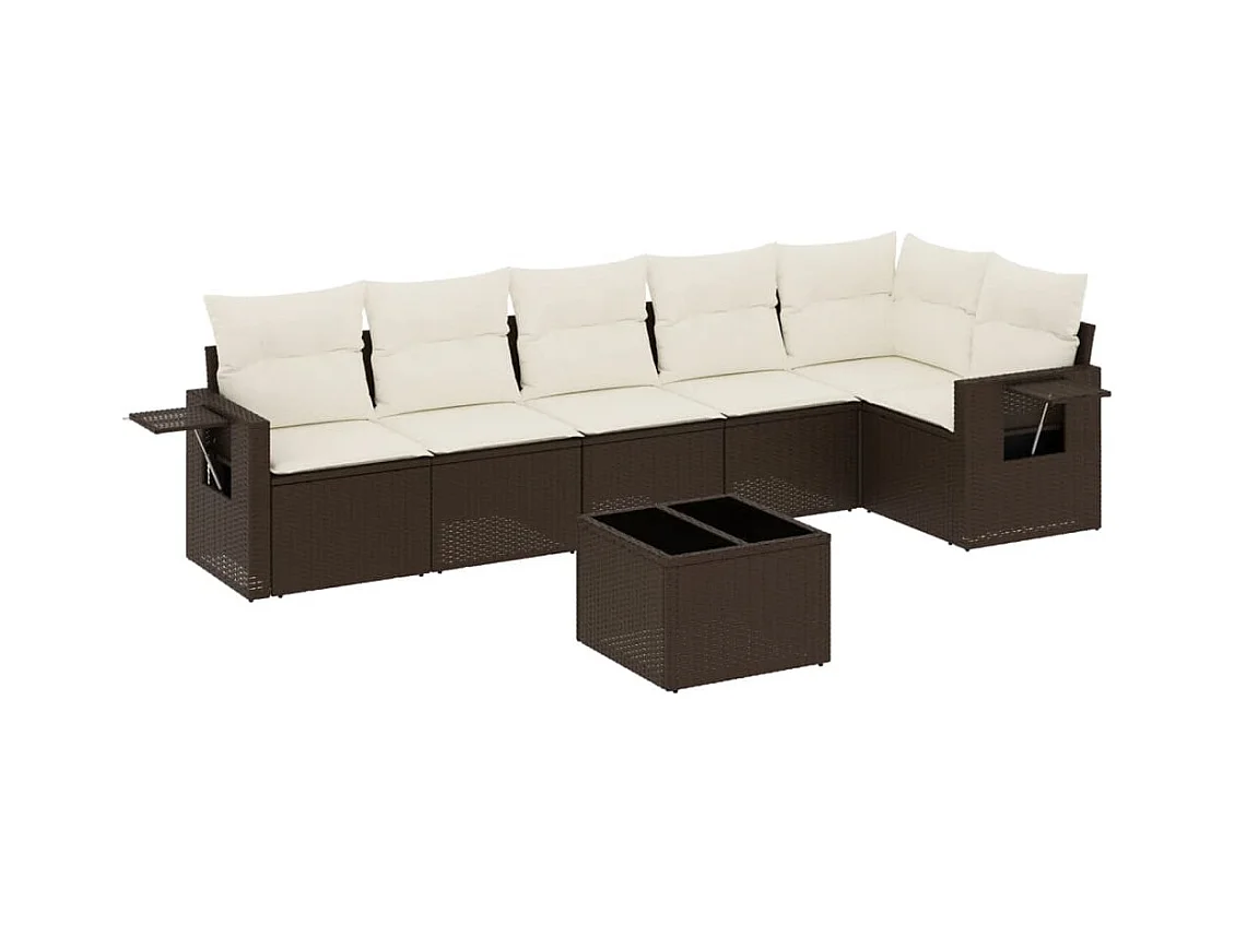 7-delige Loungeset met kussens poly rattan bruin