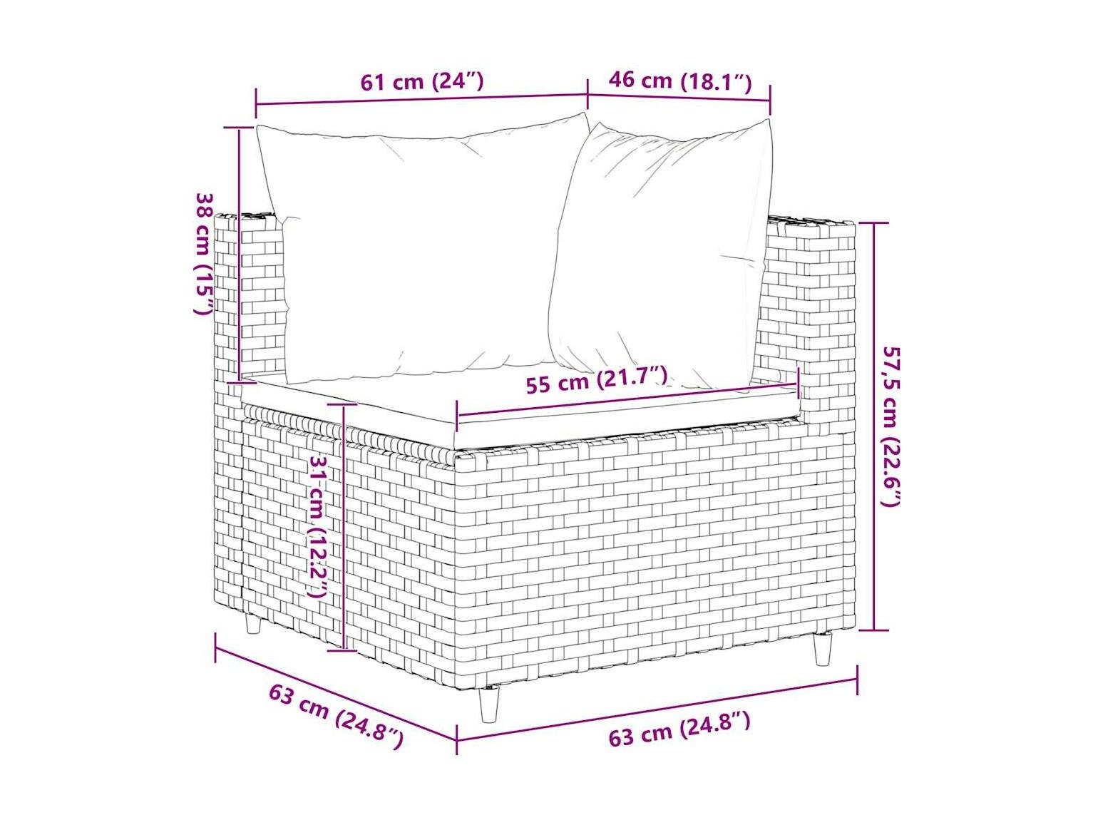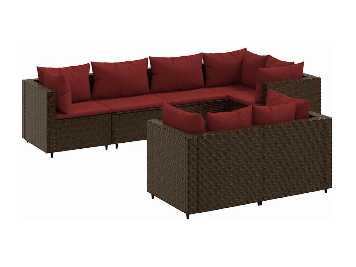 7-delige Loungeset met kussens poly rattan bruin