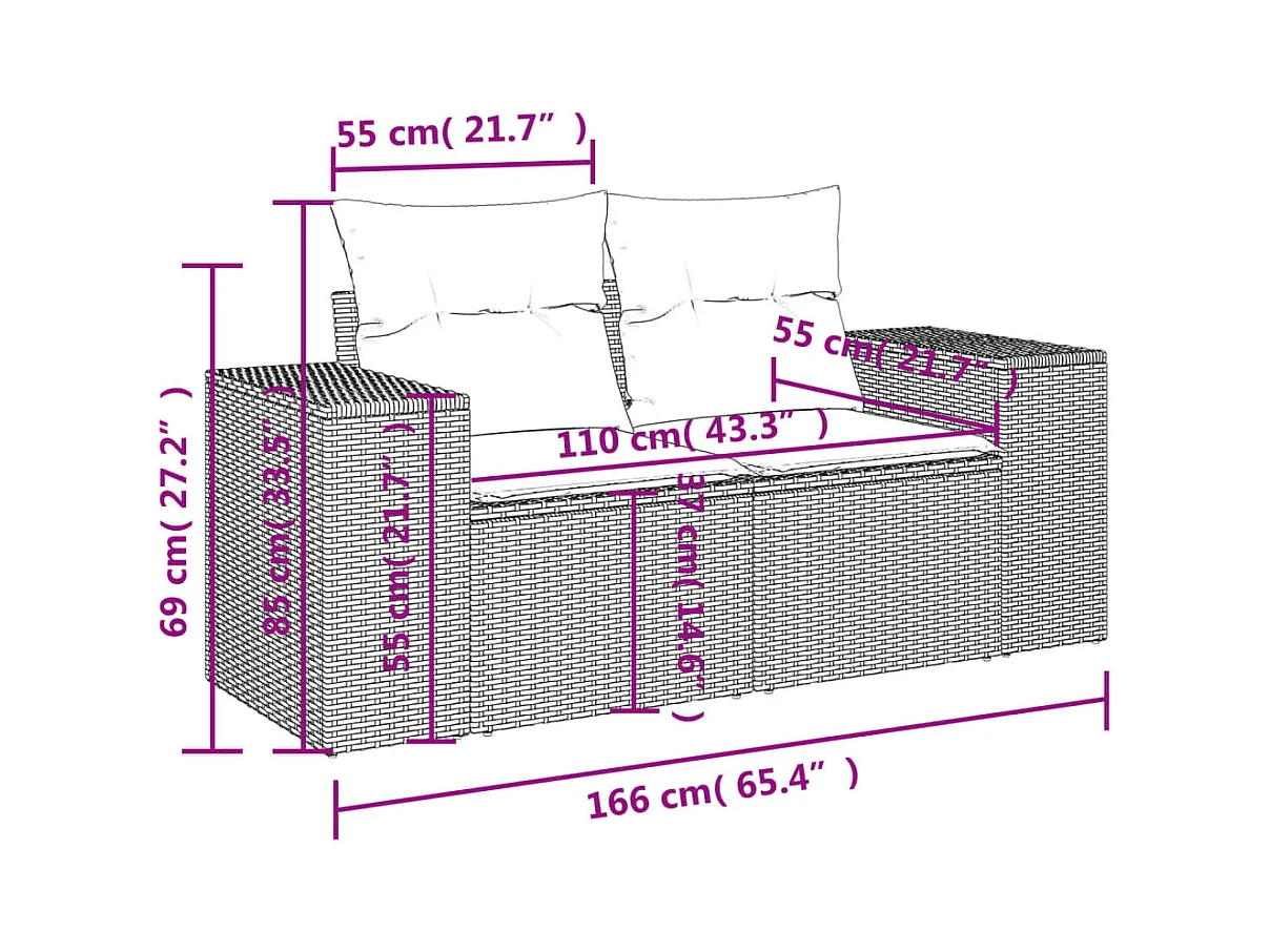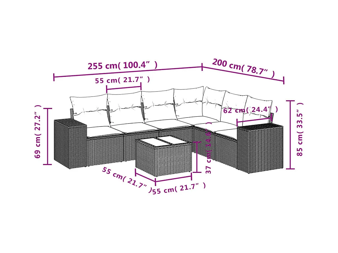 7-delige Loungeset met kussens poly rattan bruin