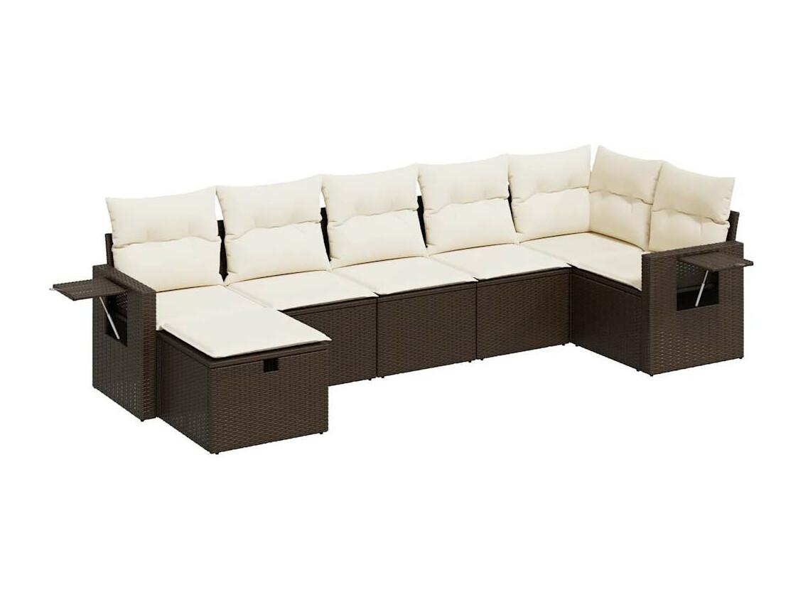 7-delige Loungeset met kussens poly rattan bruin