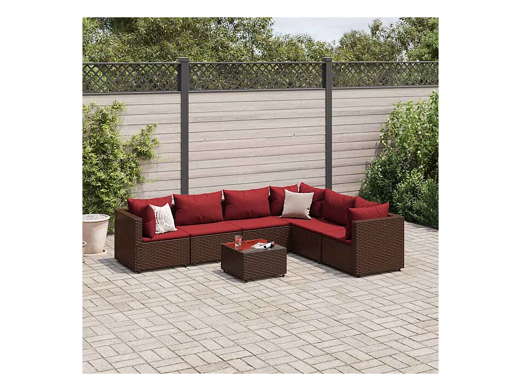 6-delige Loungeset met kussens poly rattan bruin