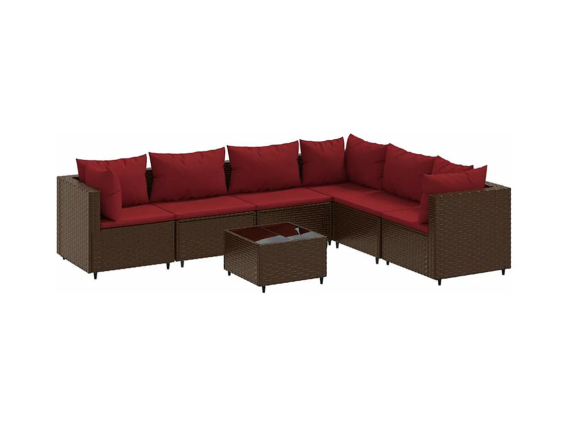 7-delige Loungeset met kussens poly rattan bruin