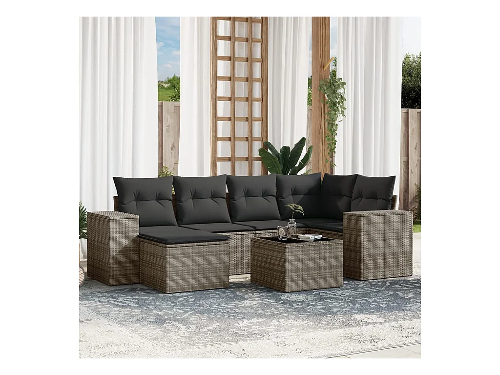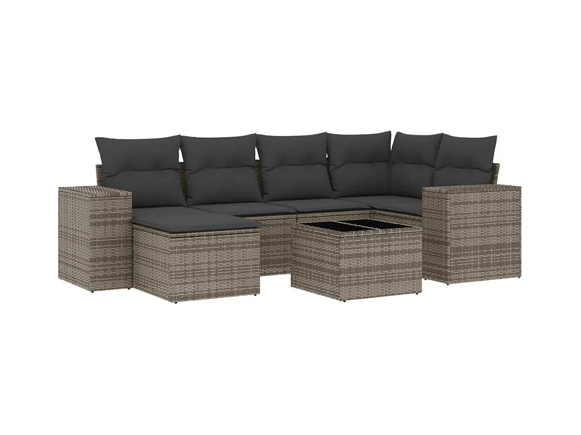7-delige Loungeset met kussens poly rattan grijs