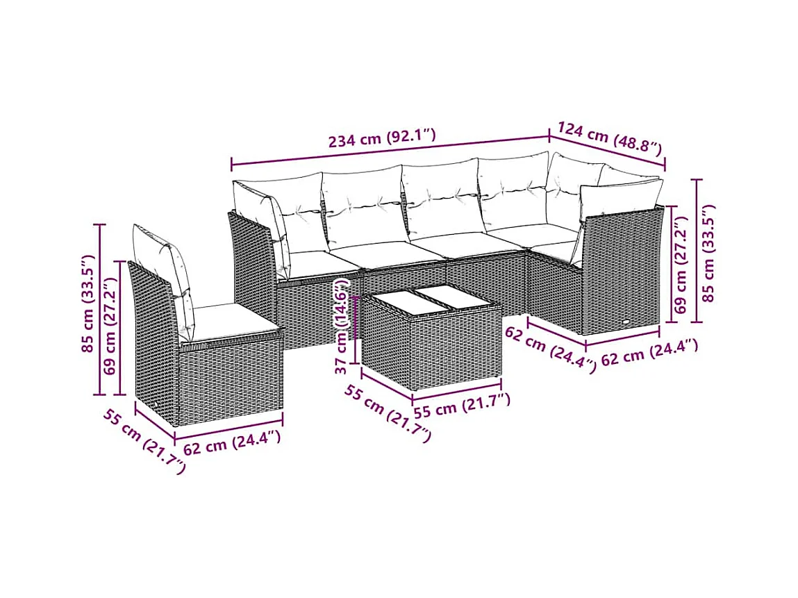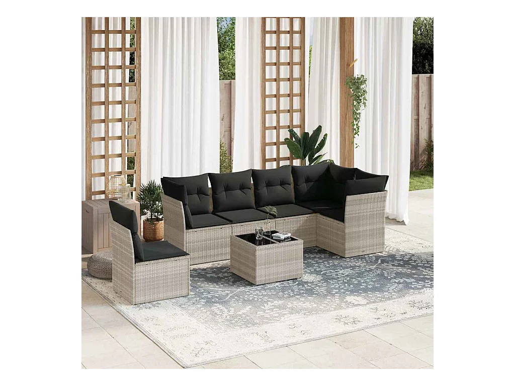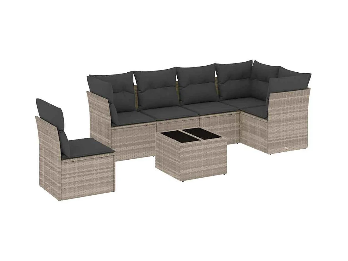 7-delige Loungeset met kussens poly rattan lichtgrijs