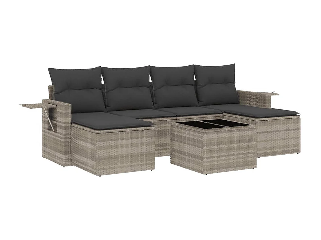 7-delige Loungeset met kussens poly rattan acacia grijs