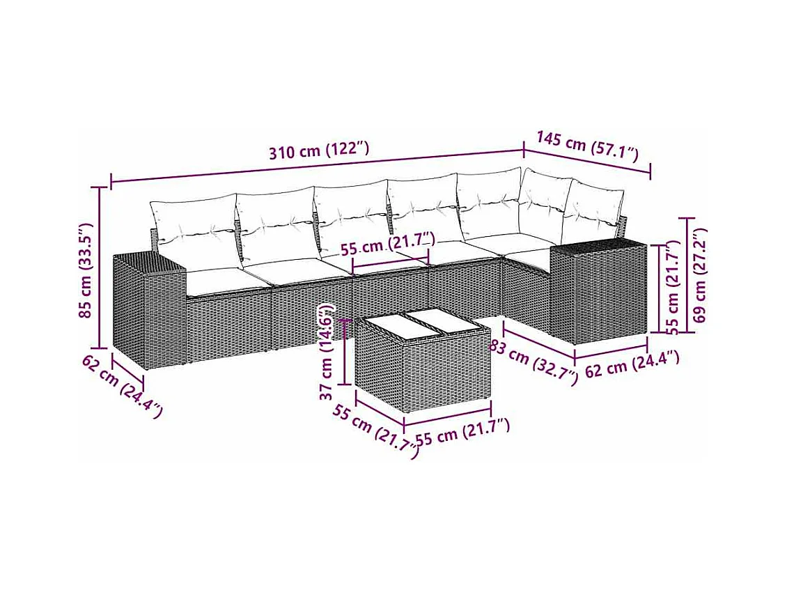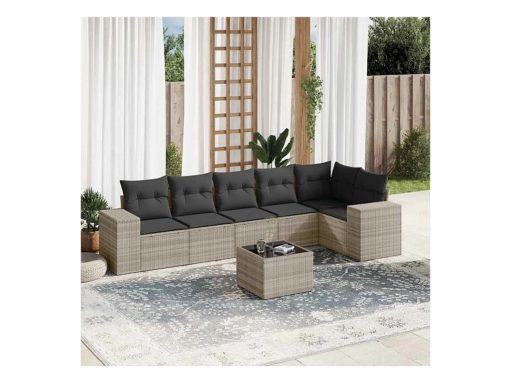 7-delige Loungeset met kussens poly rattan lichtgrijs