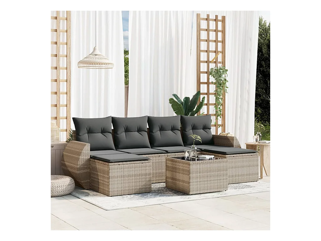 7-delige Loungeset met kussens poly rattan lichtgrijs