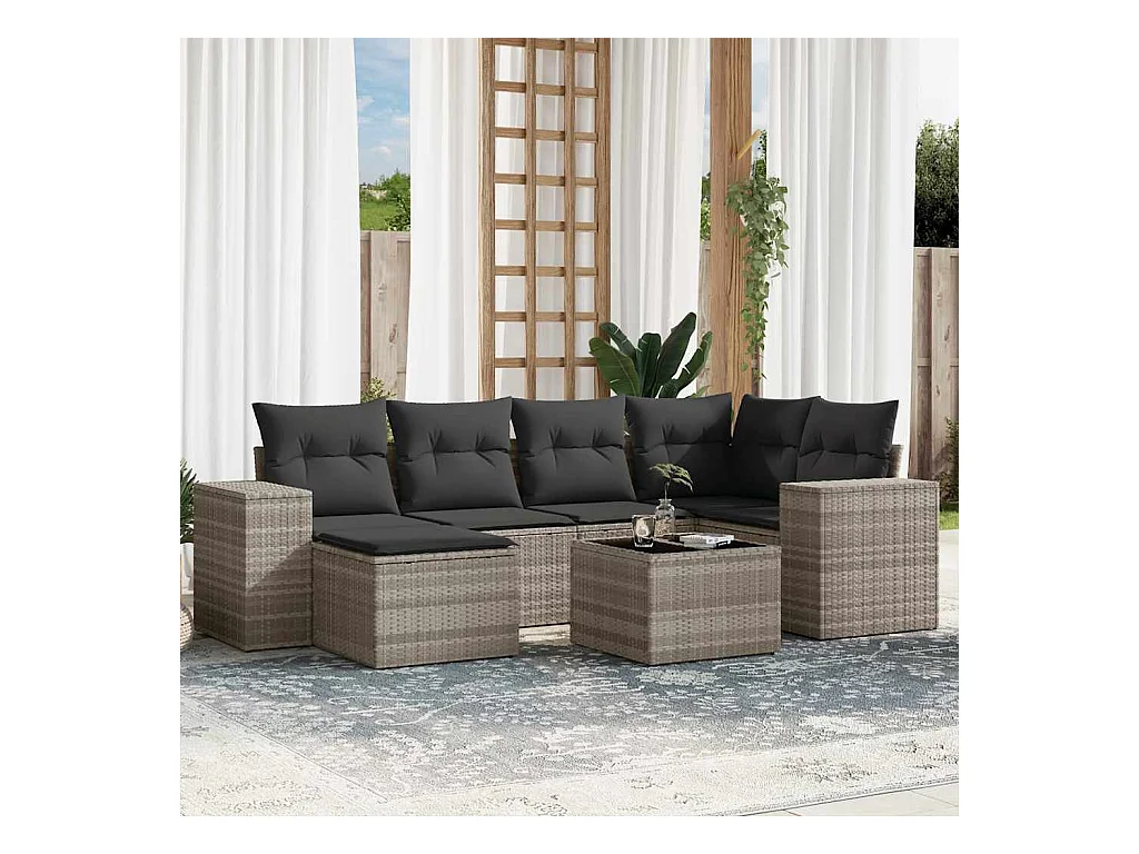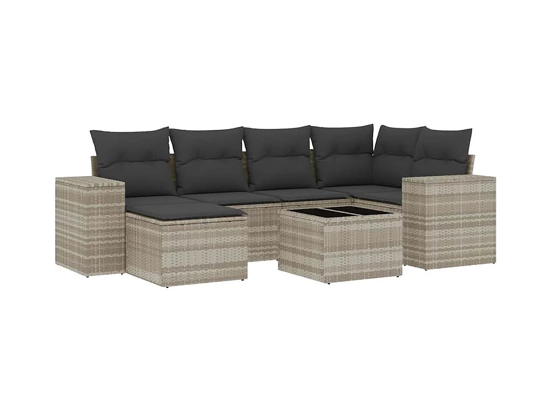 7-delige Loungeset met kussens poly rattan lichtgrijs