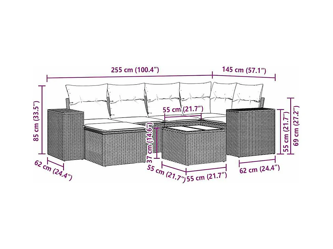6-delige Loungeset met kussens poly rattan lichtgrijs