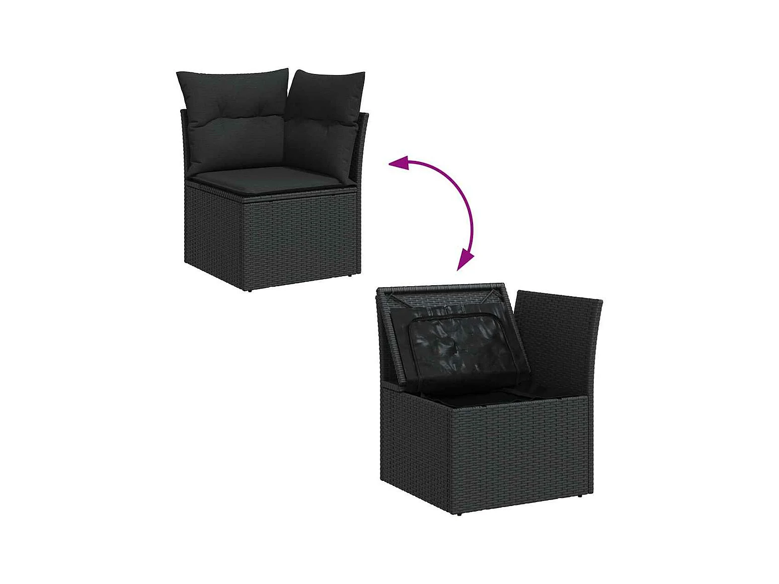 7-delige Loungeset met kussens poly rattan zwart