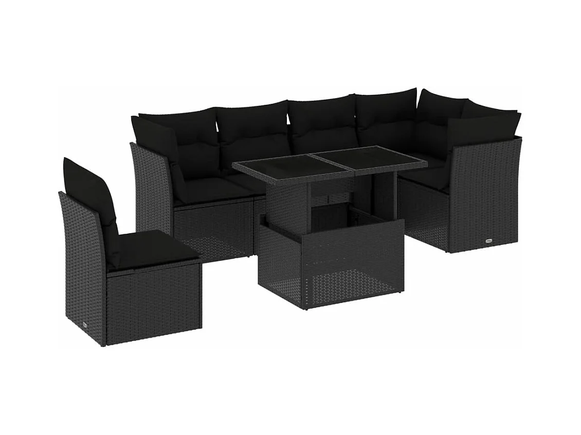 6-delige Loungeset met kussens poly rattan zwart NL63688