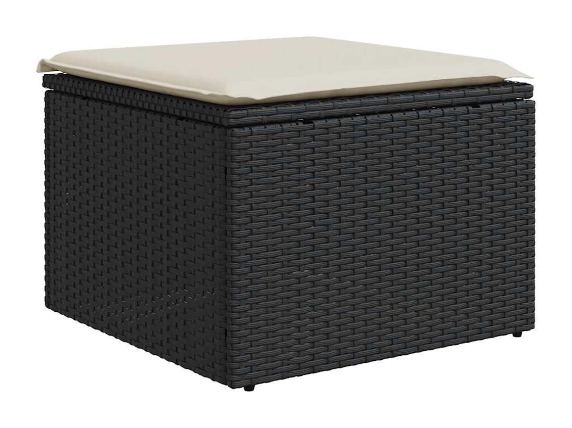 7-delige Loungeset met kussens poly rattan zwart