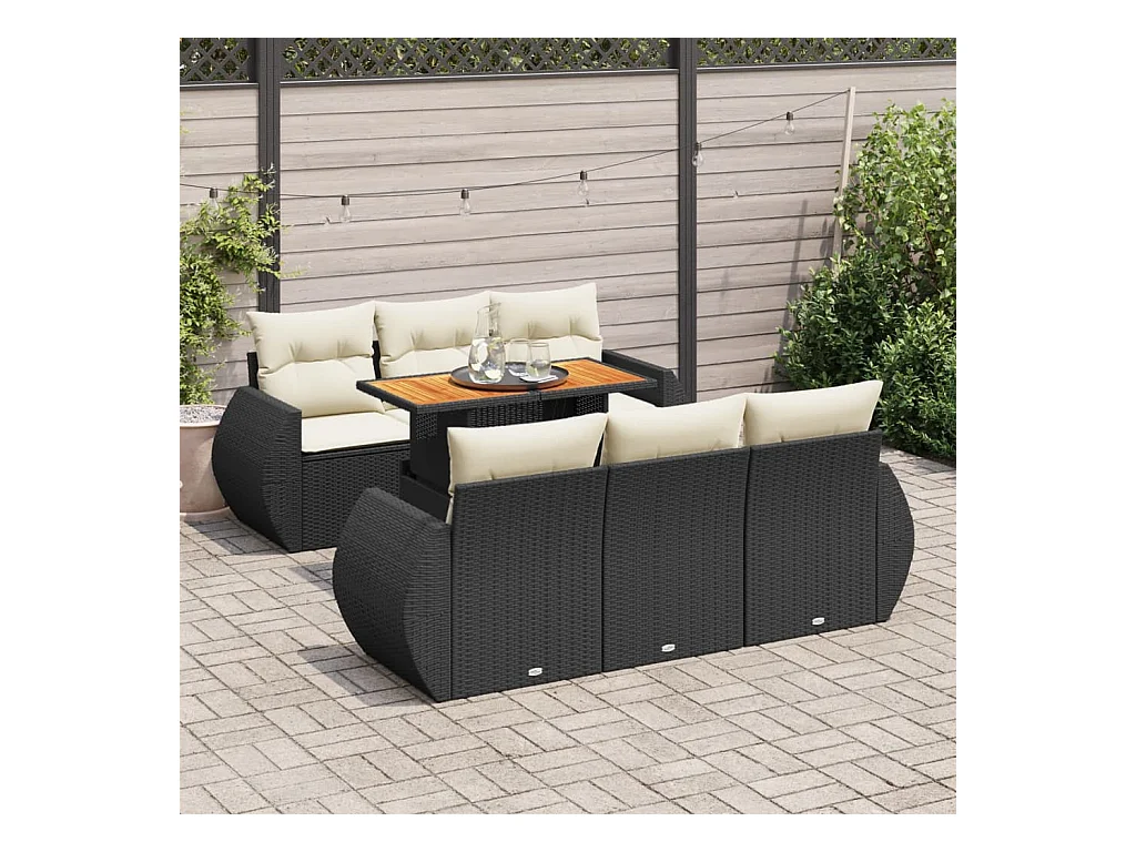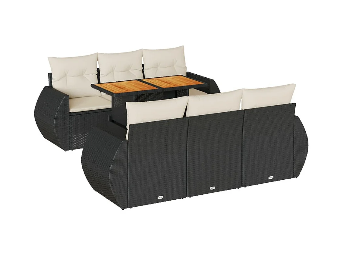 7-delige Loungeset met kussens poly rattan acacia zwart