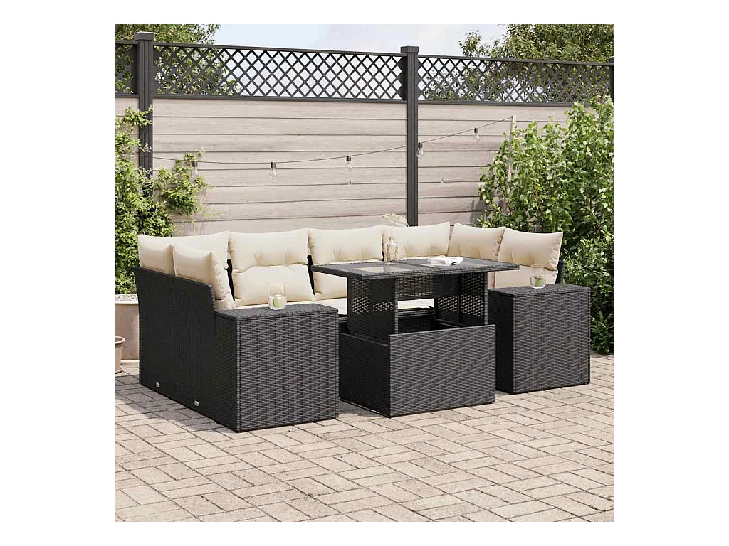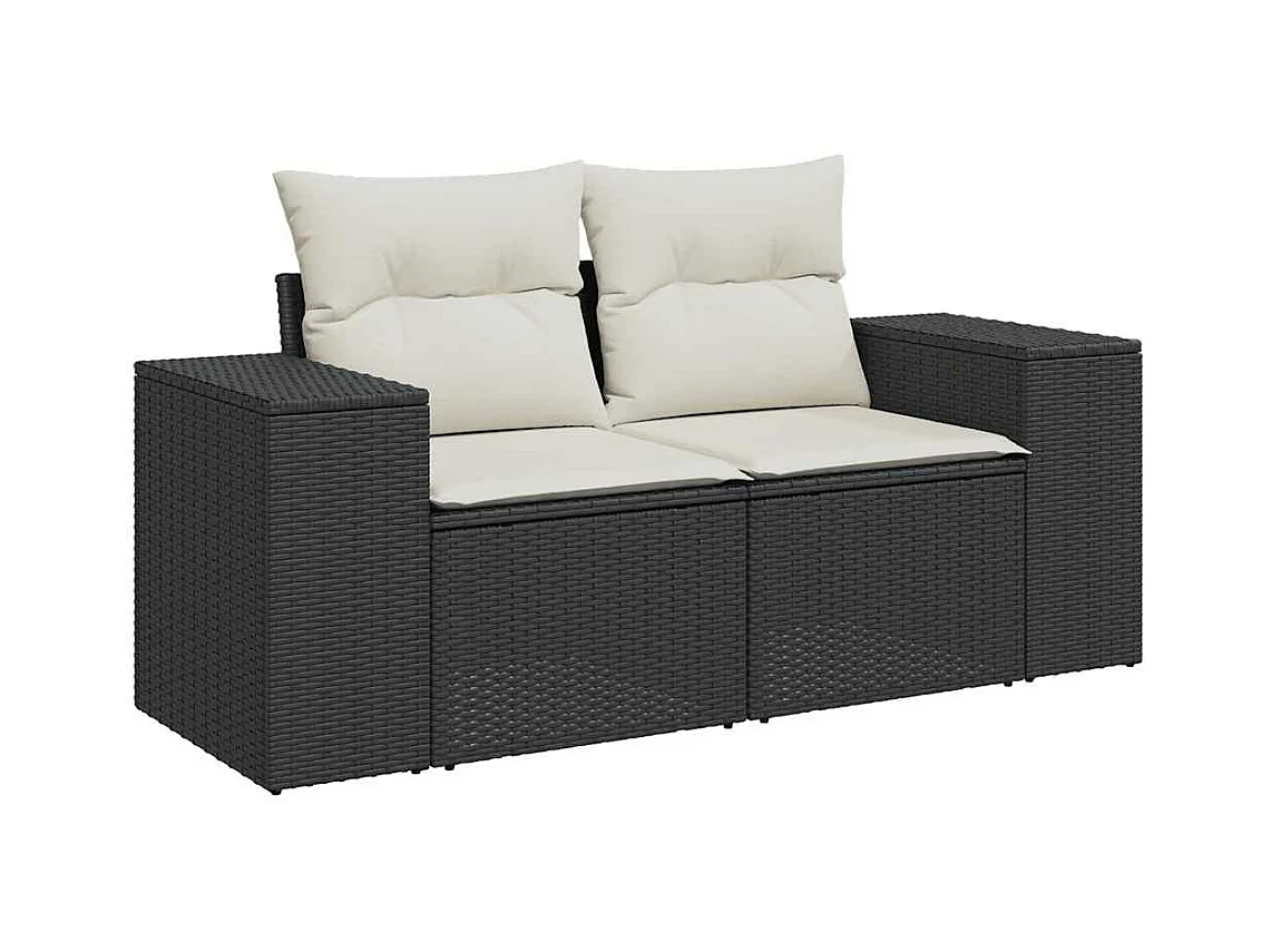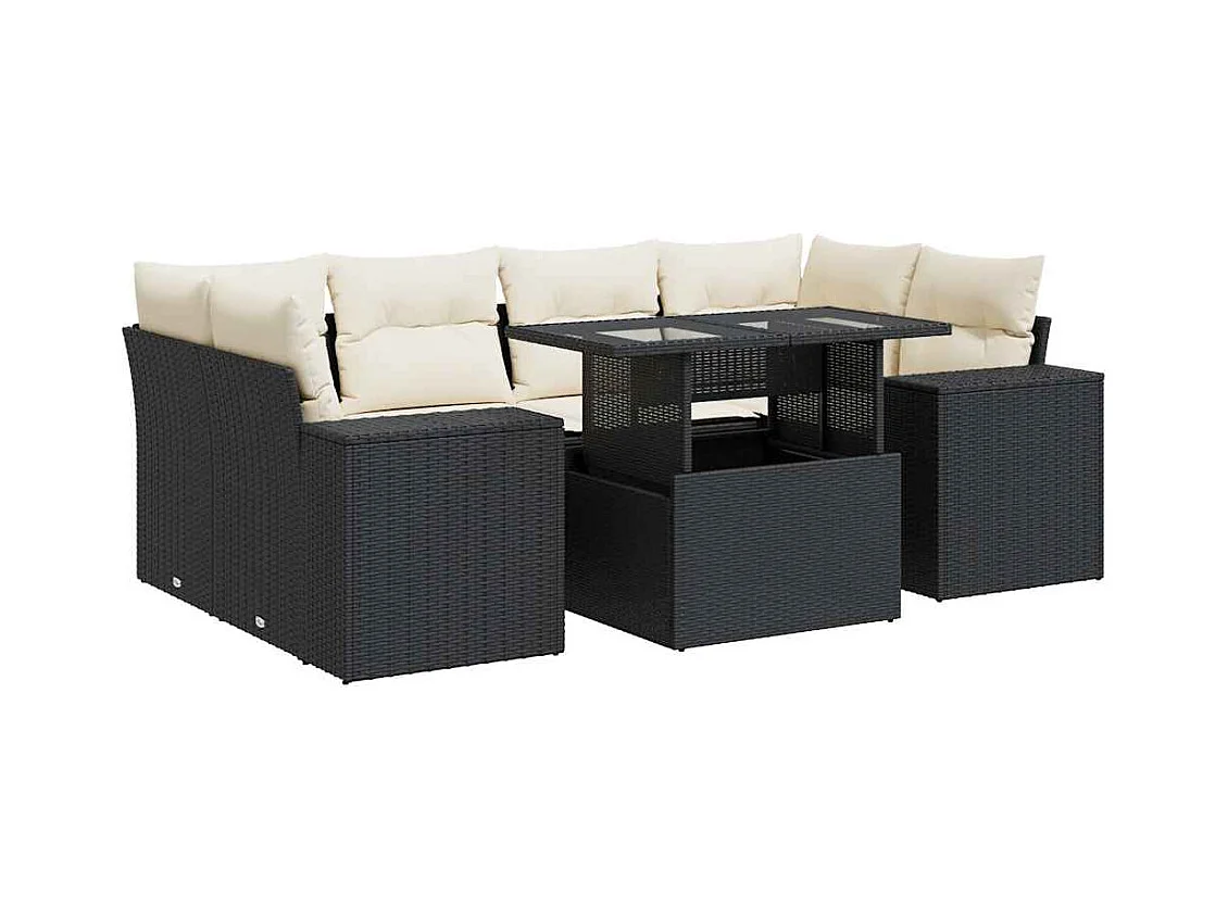 7-delige Loungeset met kussens poly rattan acacia zwart