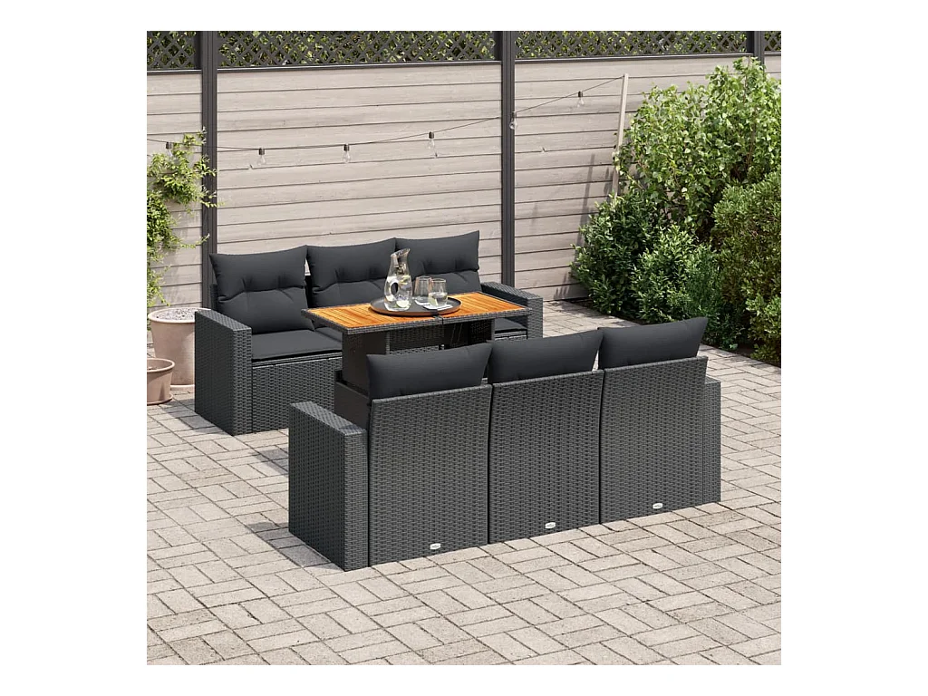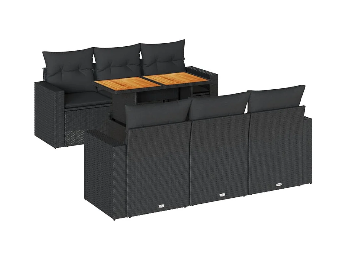 7-delige Loungeset met kussens poly rattan acacia zwart