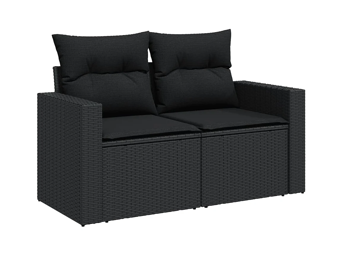 7-delige Loungeset met kussens poly rattan zwart