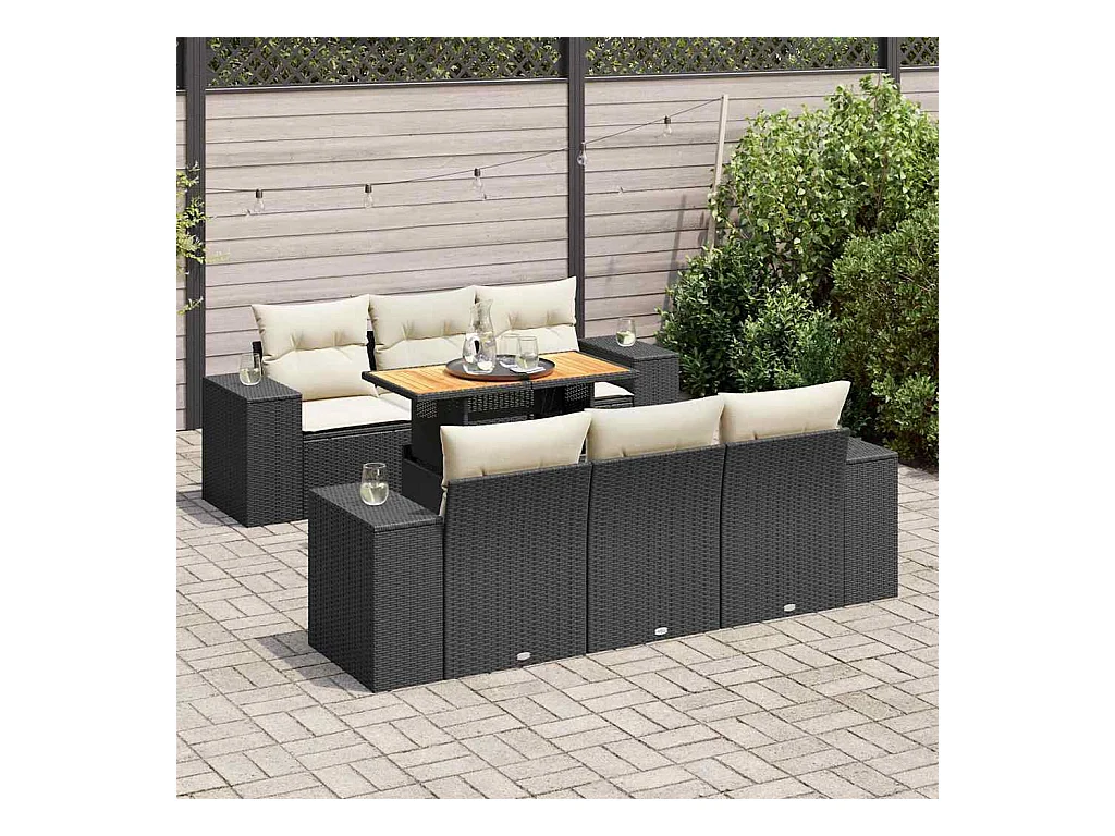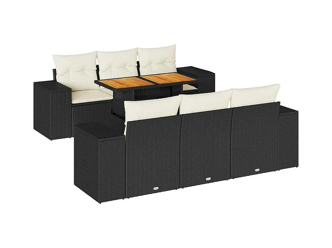 7-delige Loungeset met kussens poly rattan acacia zwart