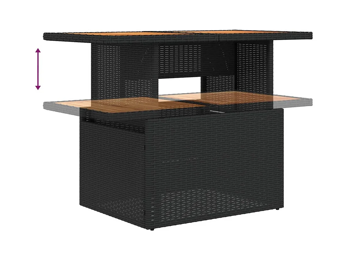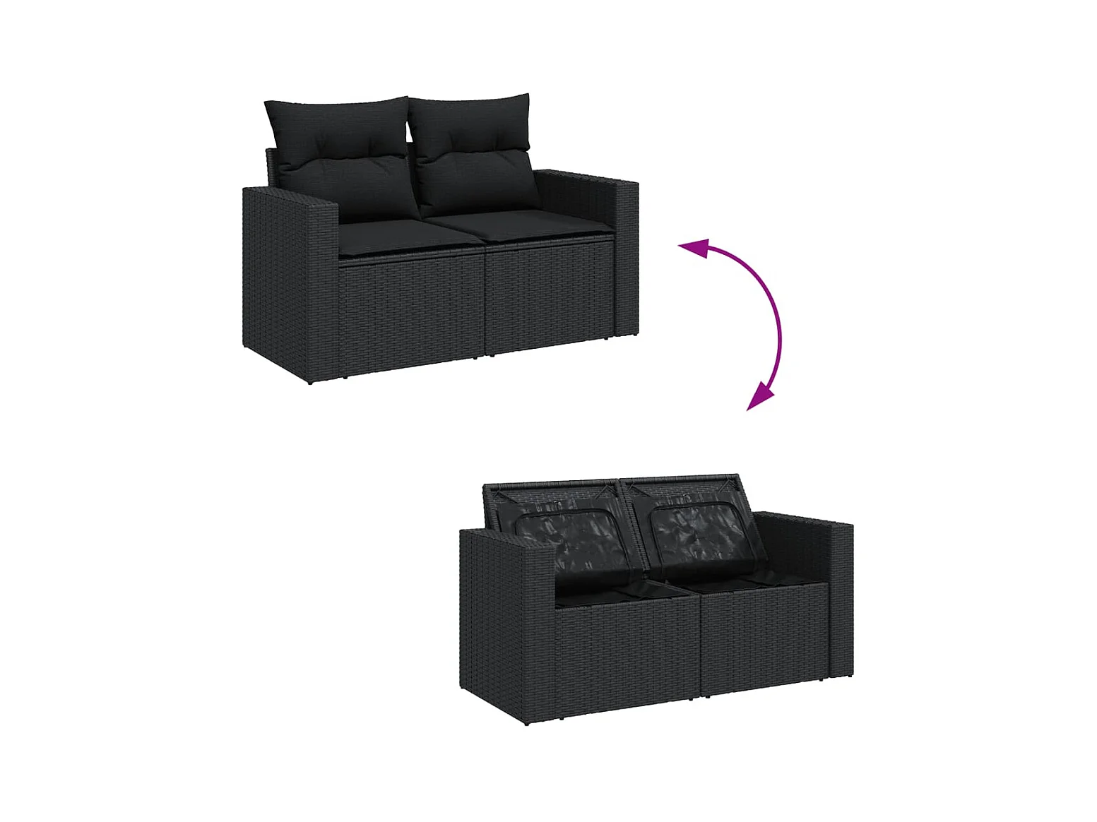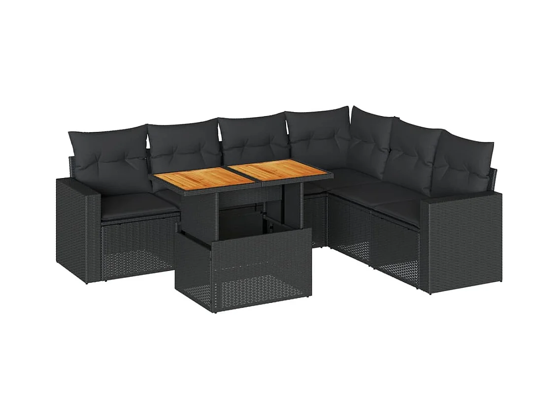 7-delige Loungeset met kussens poly rattan acacia zwart