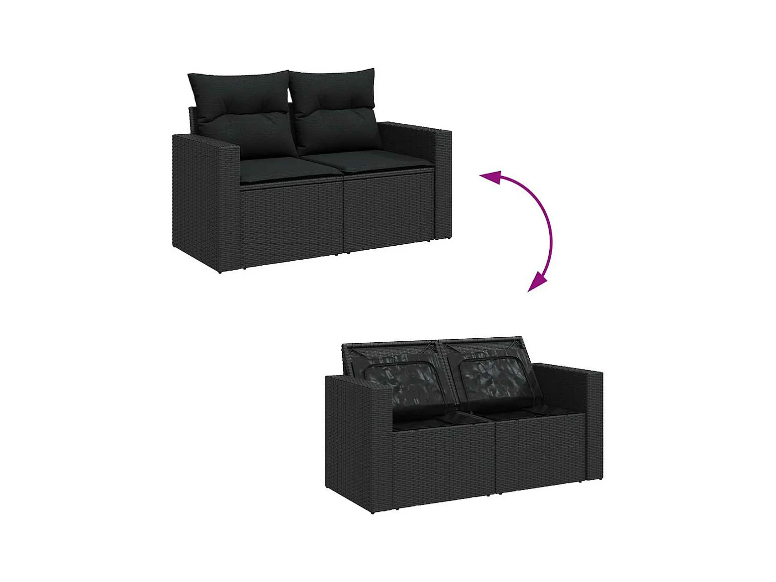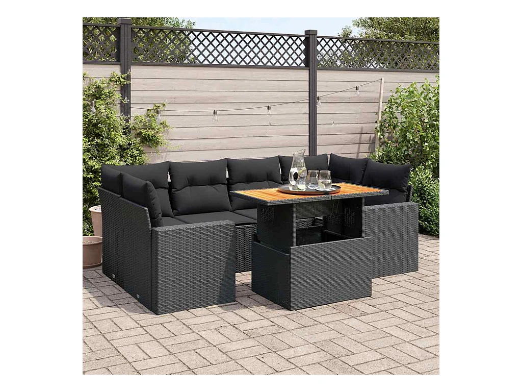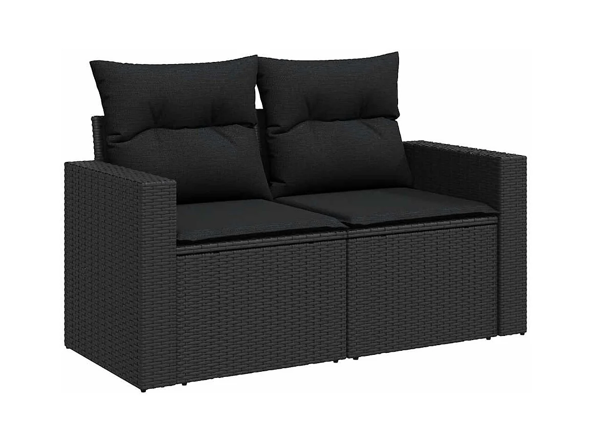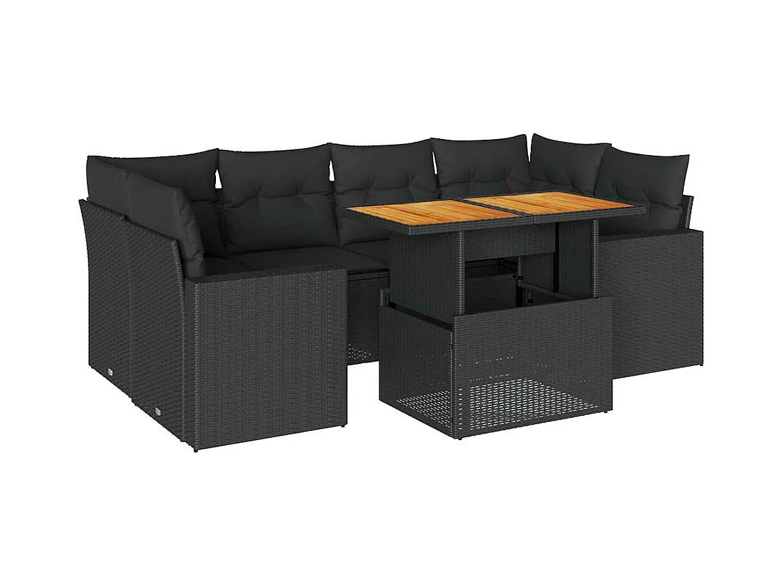 7-delige Loungeset met kussens poly rattan acacia zwart