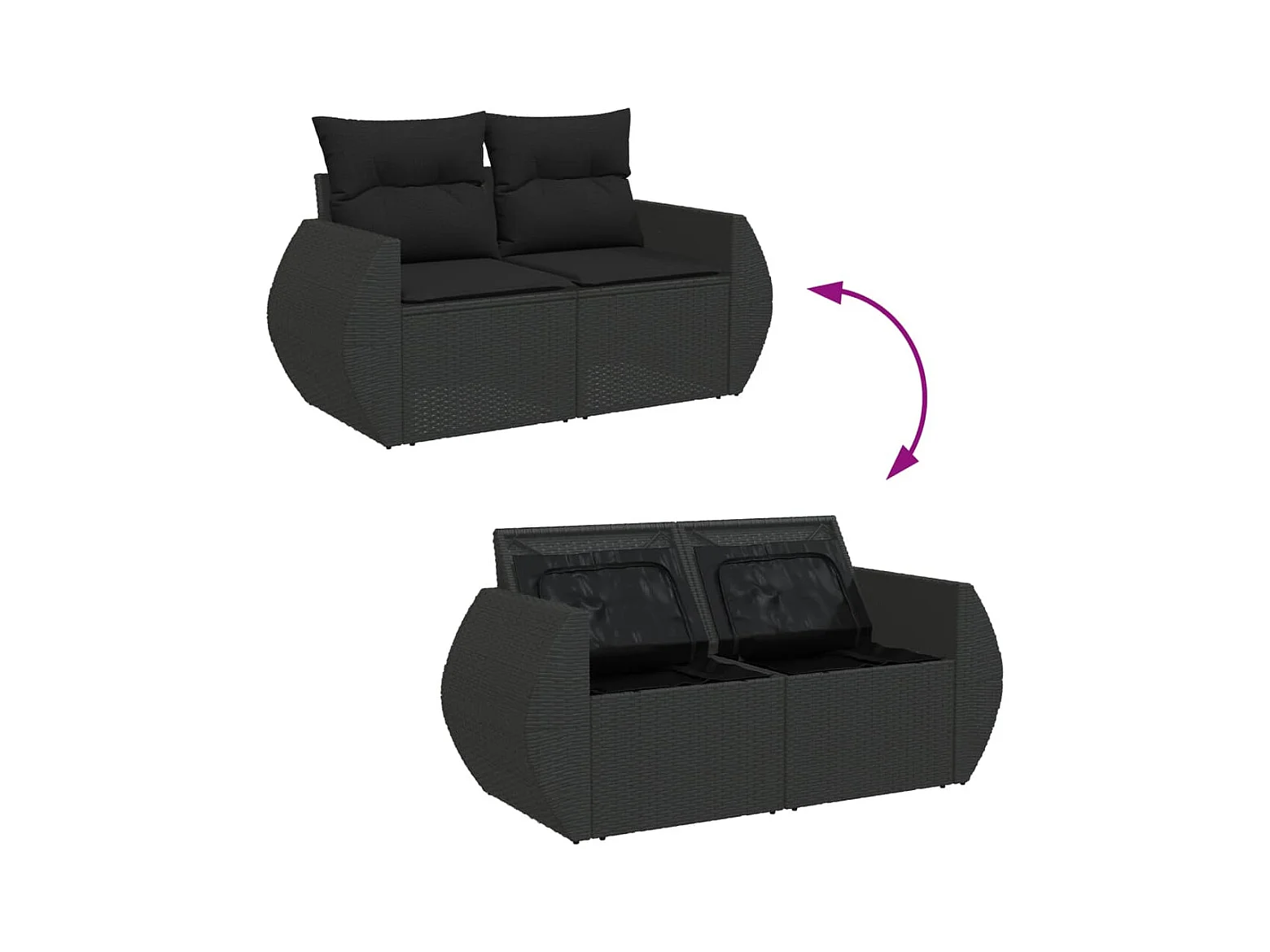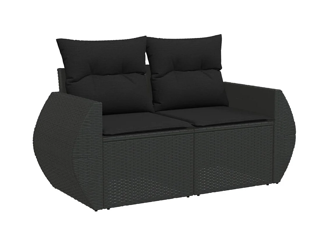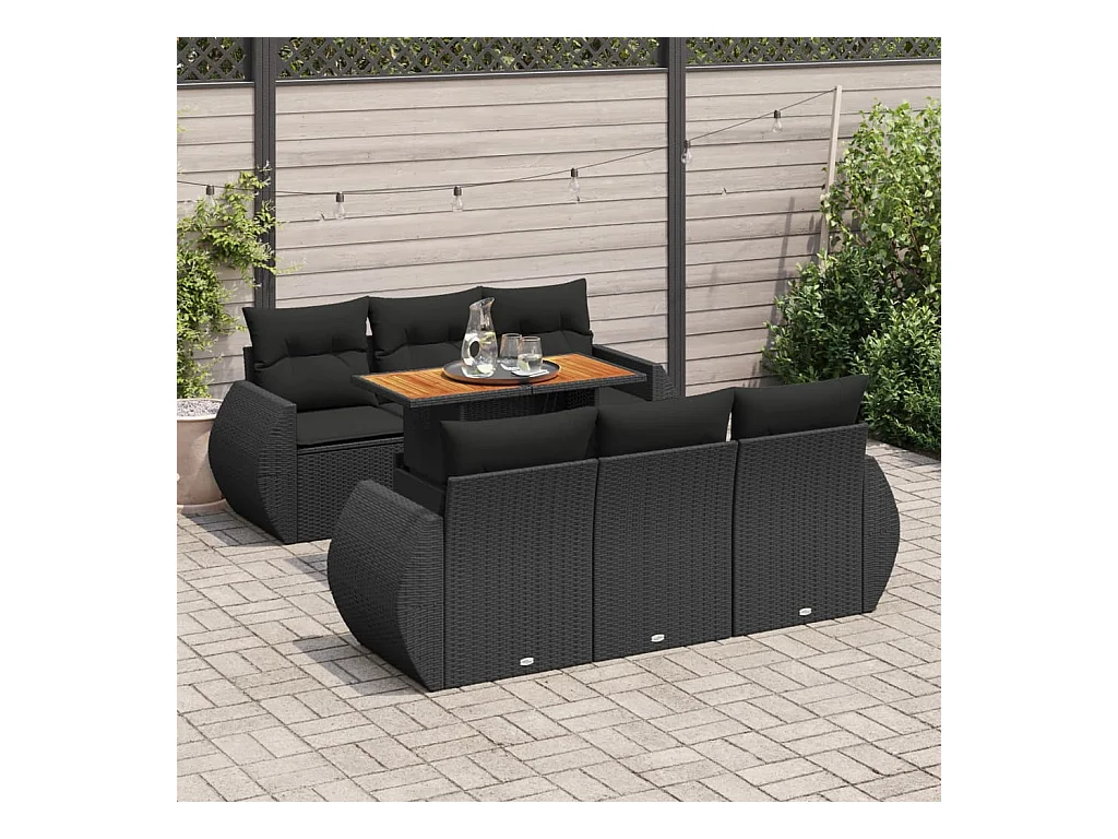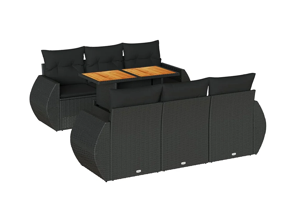 7-delige Loungeset met kussens poly rattan acacia zwart