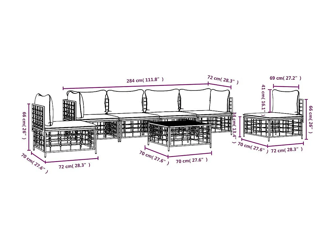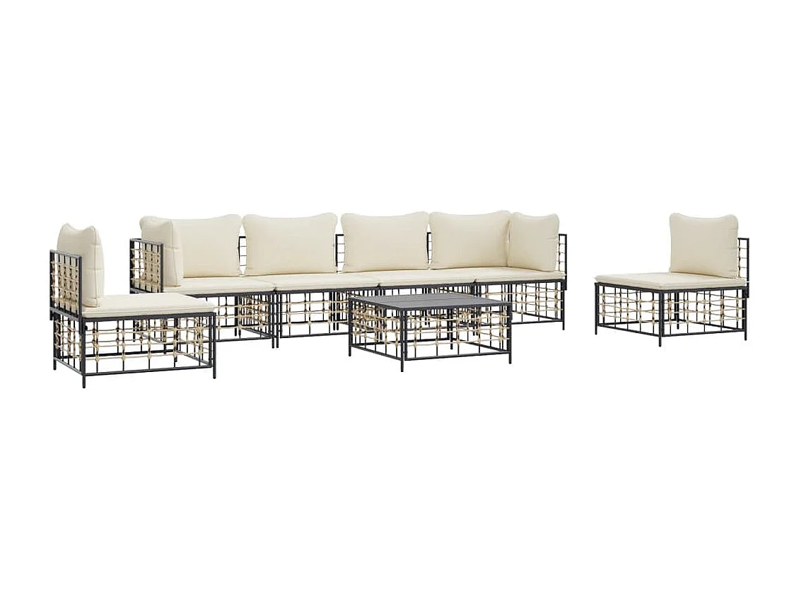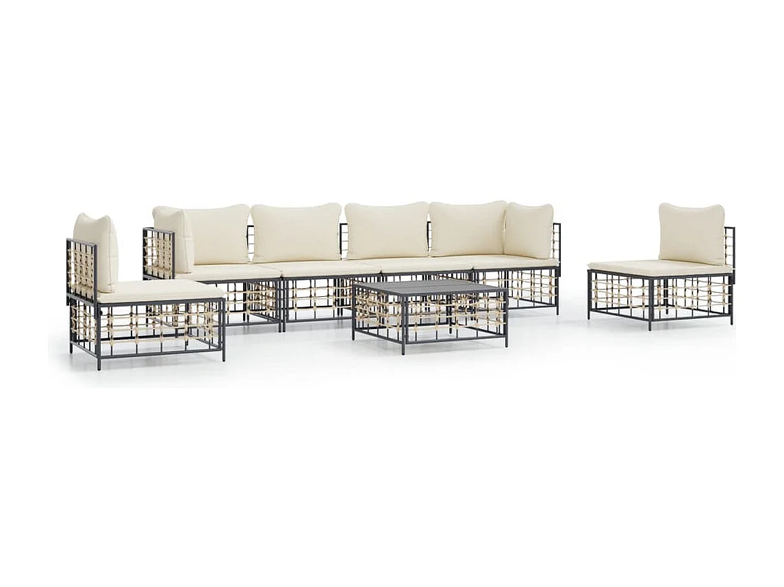 7 stuks tuinmeubelen met antraciet geweven harskussens