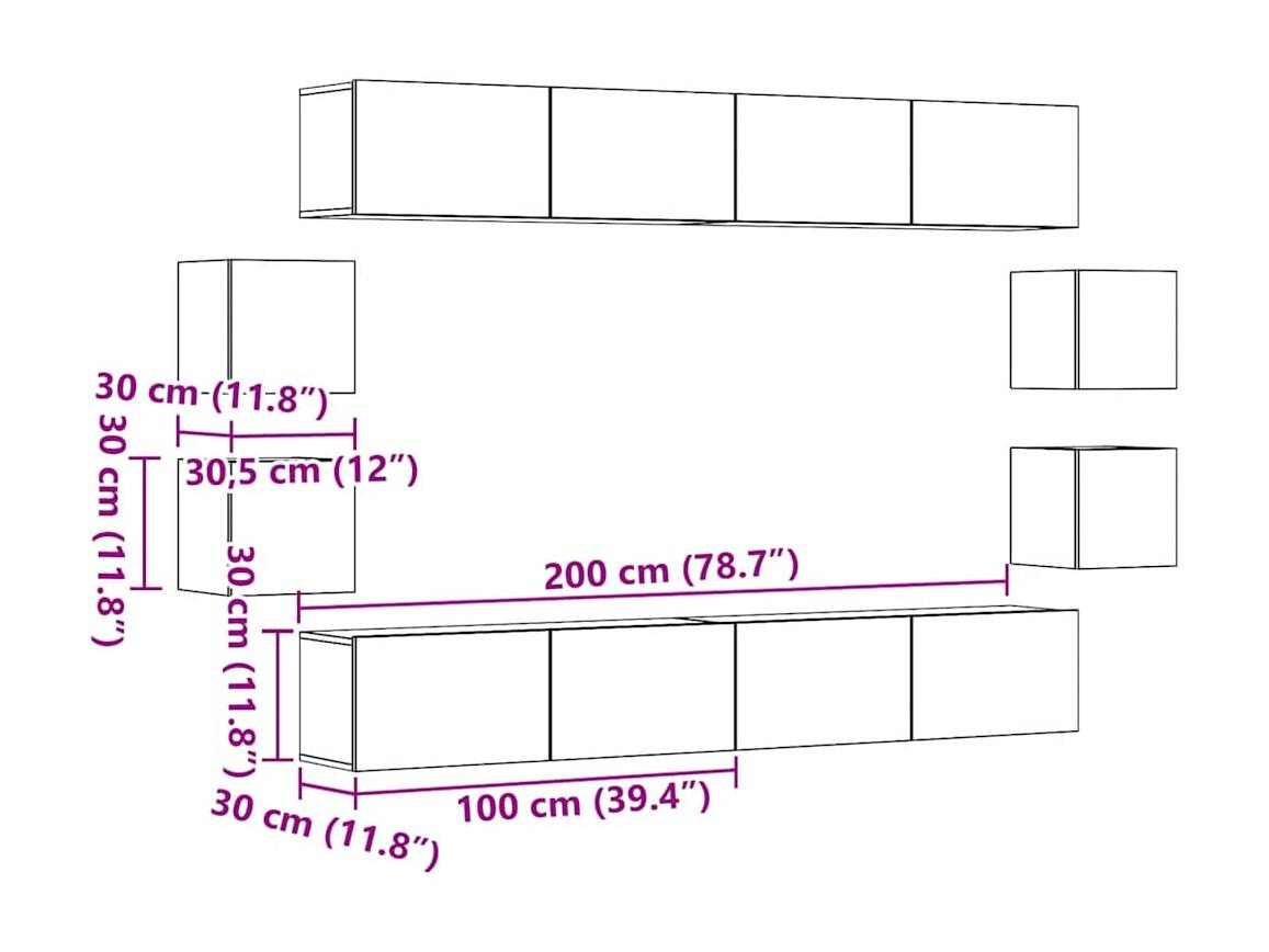 8-delig Tv-meubelset wandmontage bewerkt hout artisanaal eiken