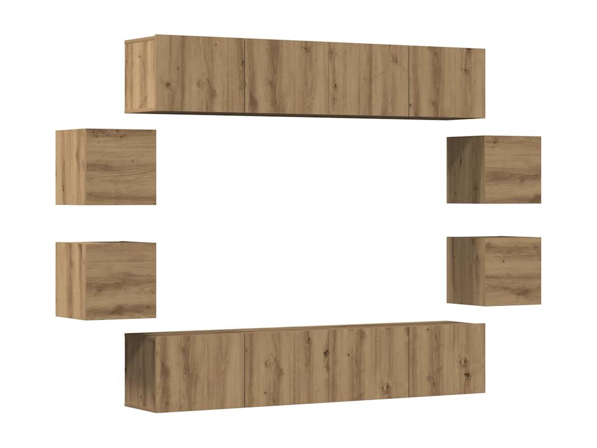 8-delig Tv-meubelset wandmontage bewerkt hout artisanaal eiken