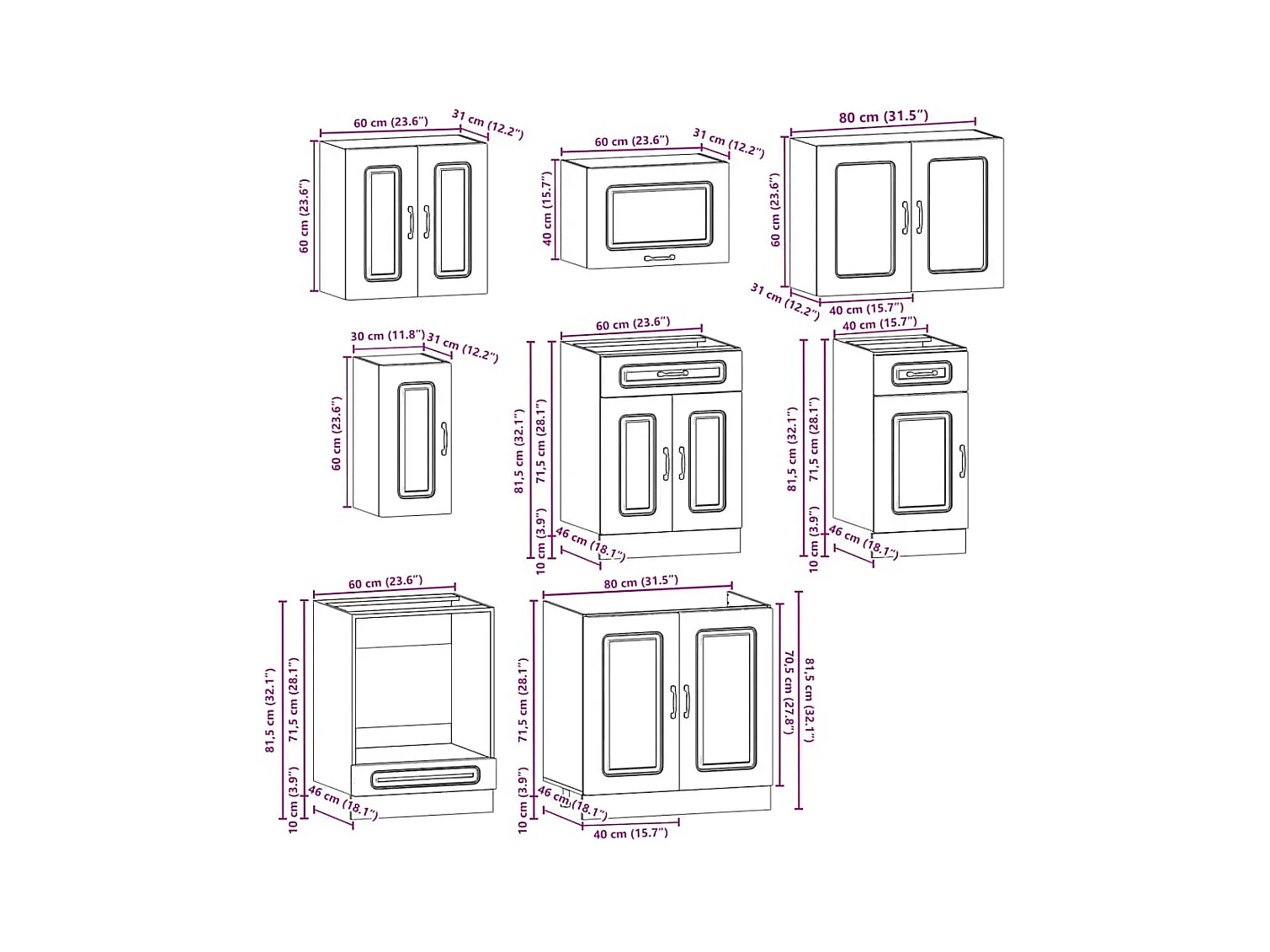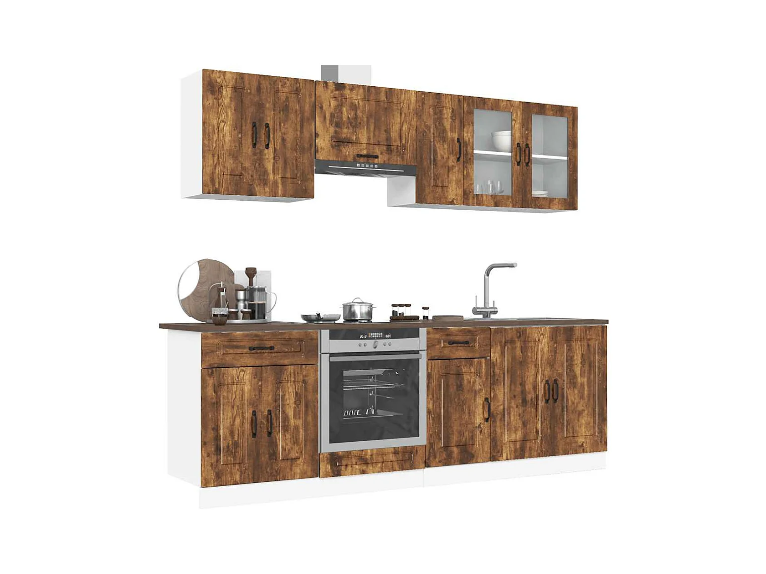 8-delige Keukenkastenset Kalmar bewerkt hout gerookt eiken