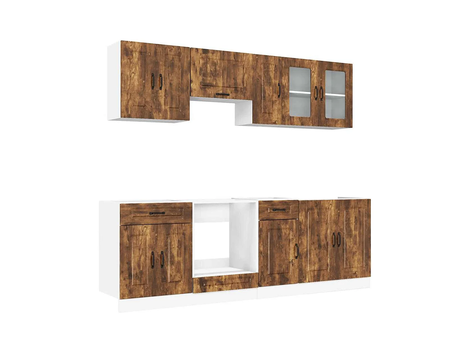 7-delige Keukenkastenset Kalmar bewerkt hout gerookt eiken