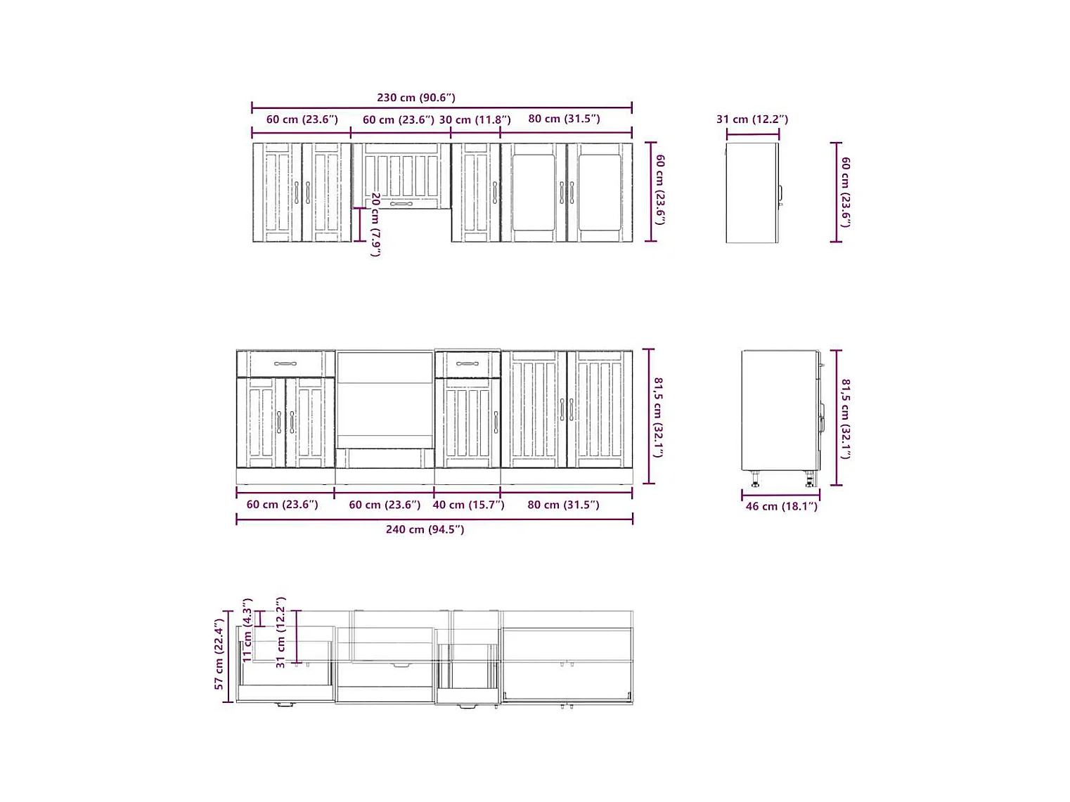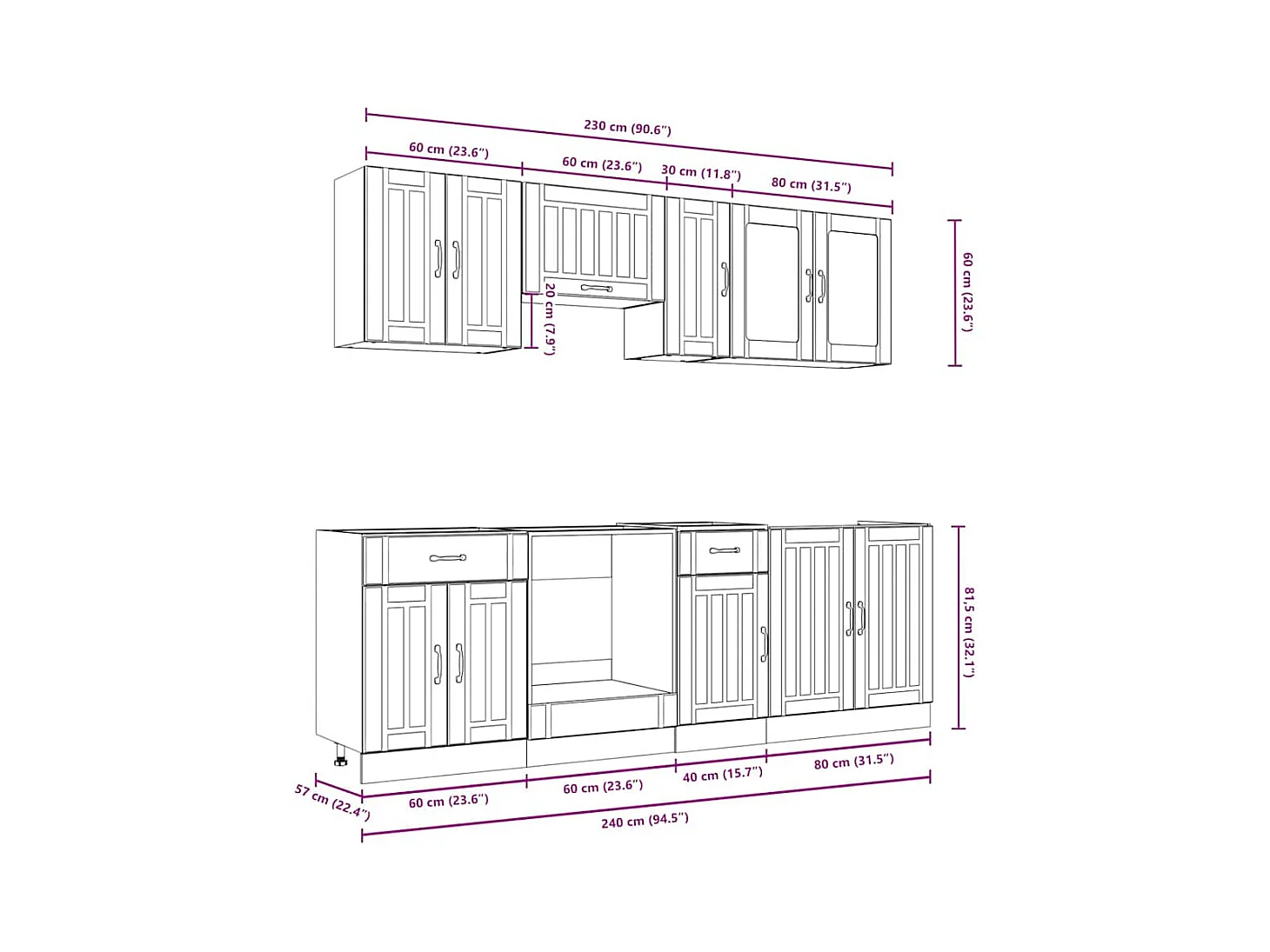 7-delige Keukenkastenset Porto bewerkt hout oud houtkleurig