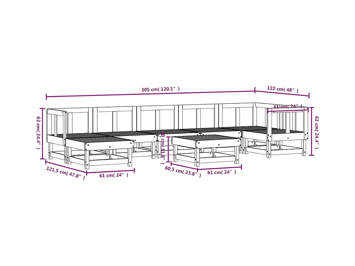 8-delige Loungeset massief grenenhout
