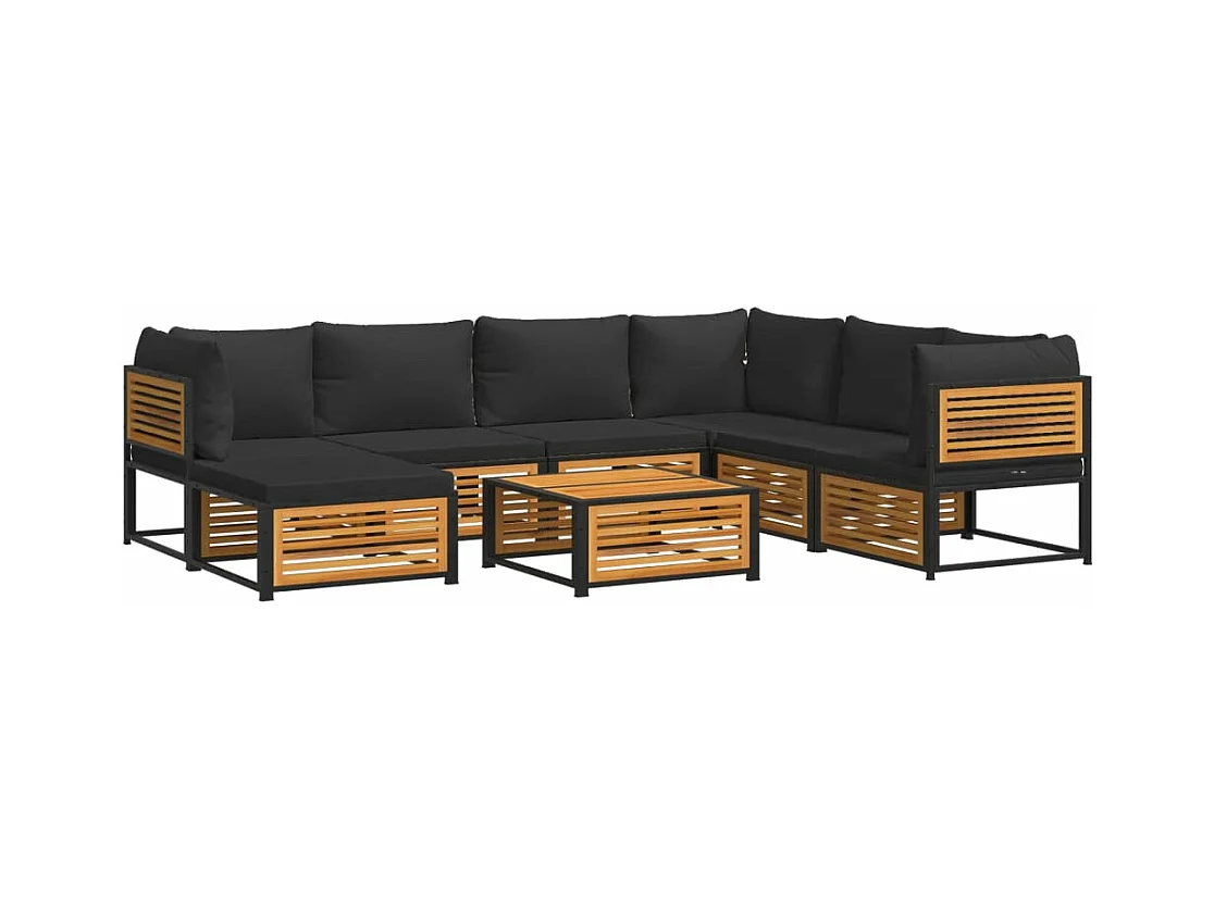 Loungeset 7-zits met kussens massief acaciahout bruin