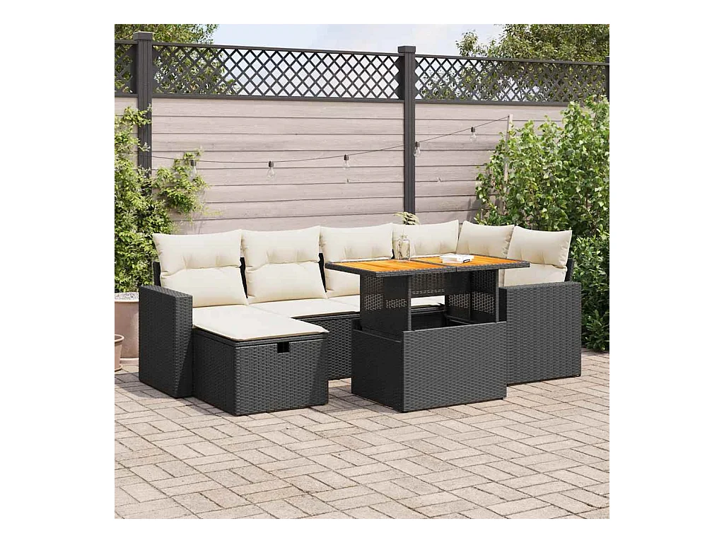 7-delige Loungeset met kussens poly rattan acacia zwart