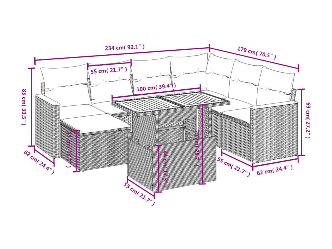 • 7 x zitkussen met afneembare en wasbare hoes