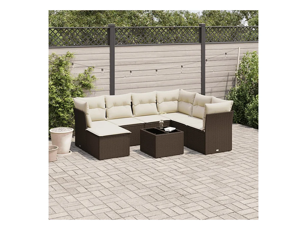 8-delige Loungeset met kussens poly rattan bruin