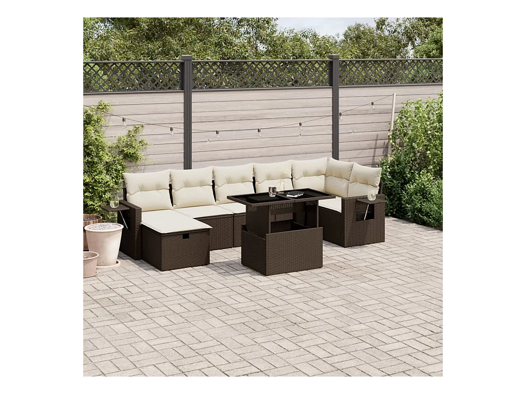 7-delige Loungeset met kussens poly rattan bruin