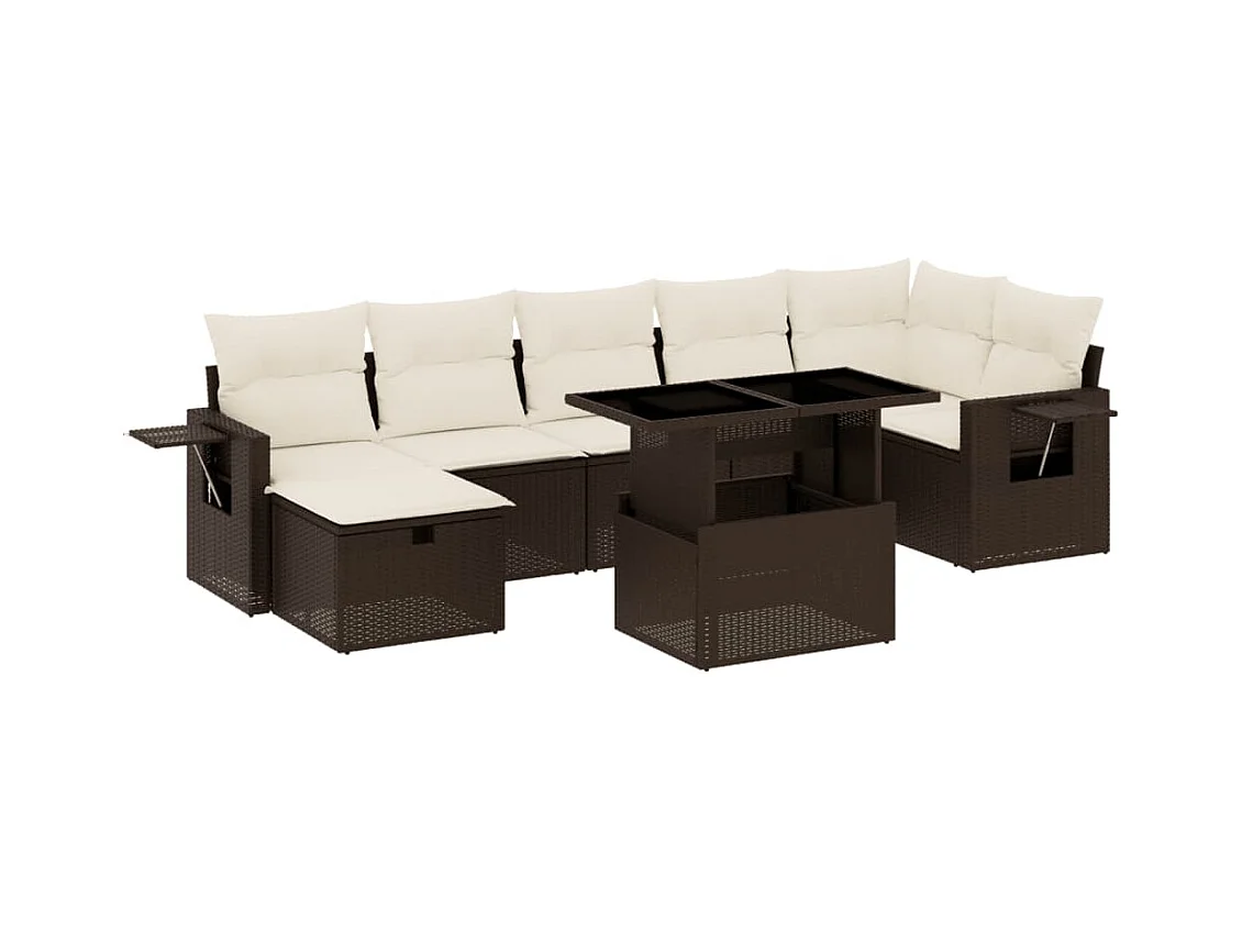 8-delige Loungeset met kussens poly rattan bruin