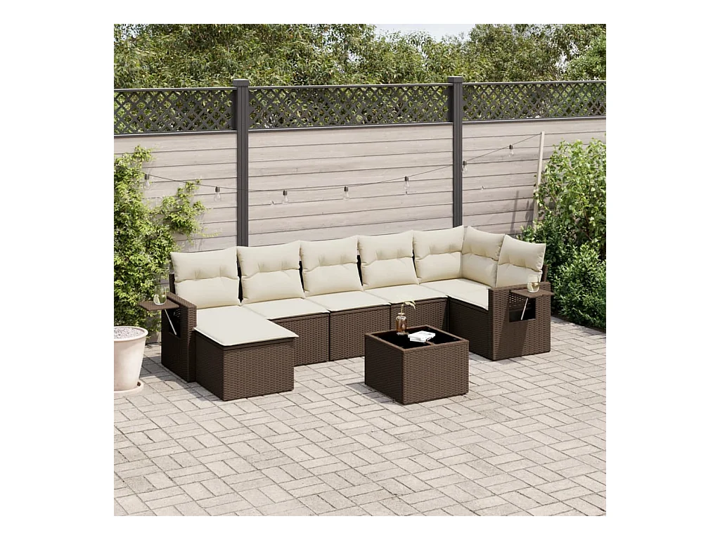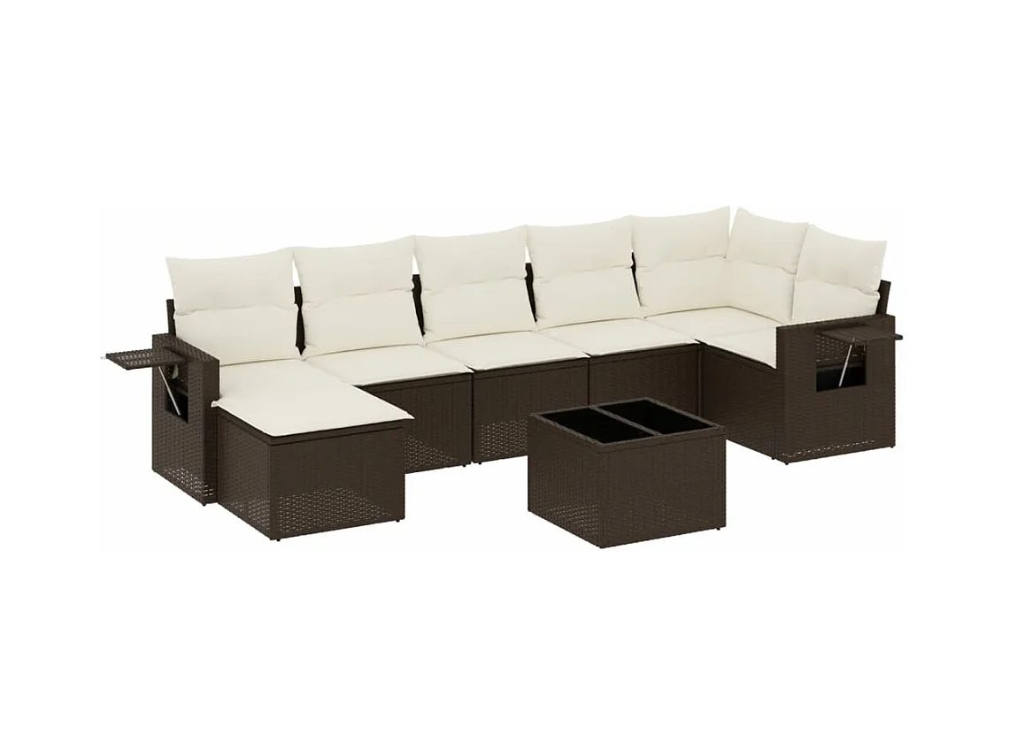 8-delige Loungeset met kussens poly rattan bruin