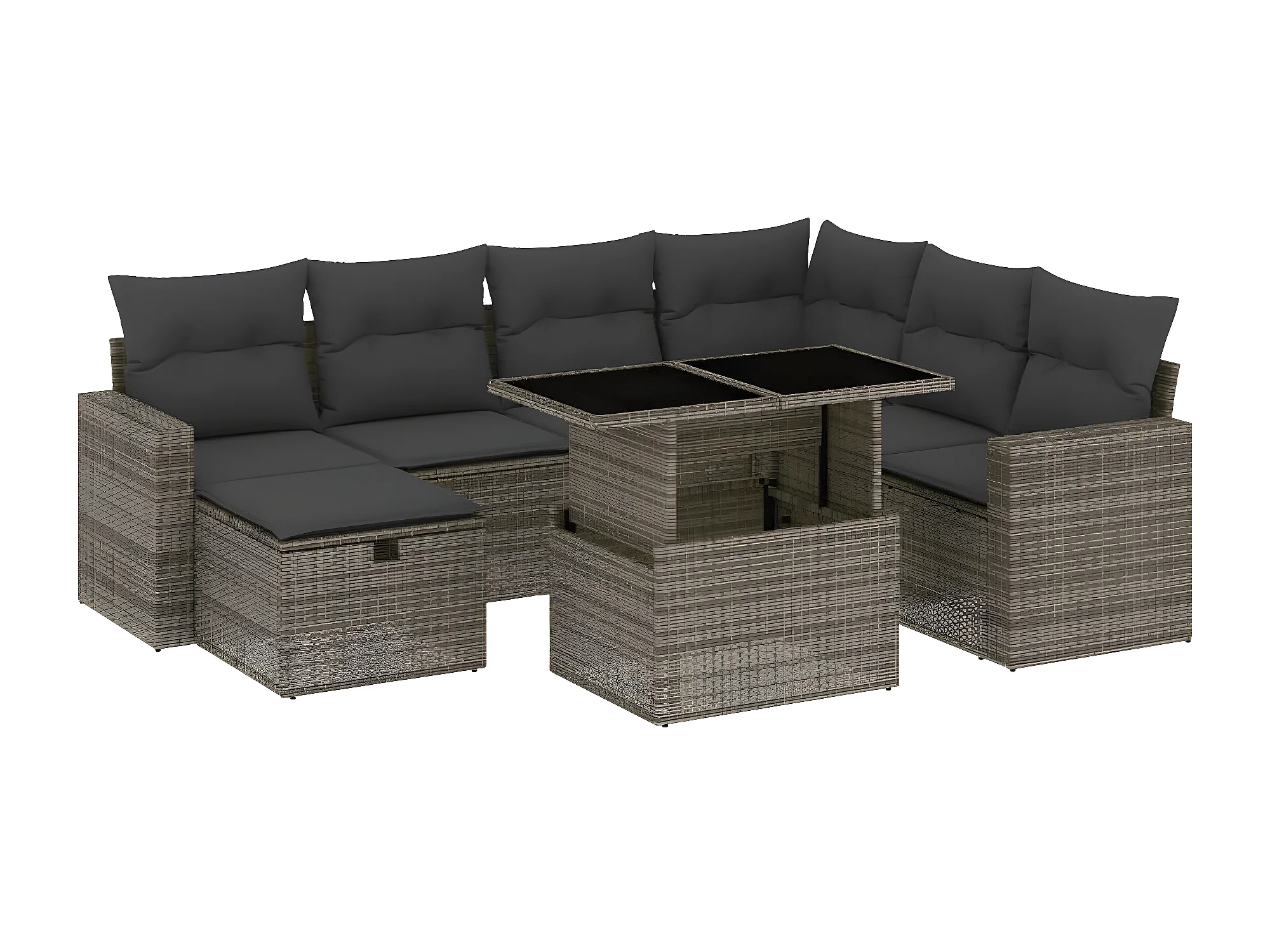 8-delige Loungeset met kussens poly rattan grijs