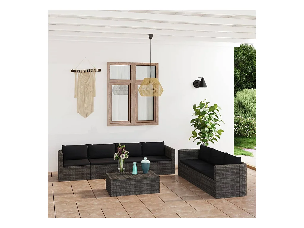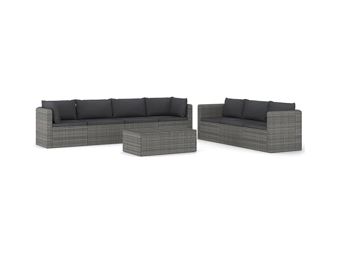 6-delige Loungeset met kussens poly rattan grijs NL77075