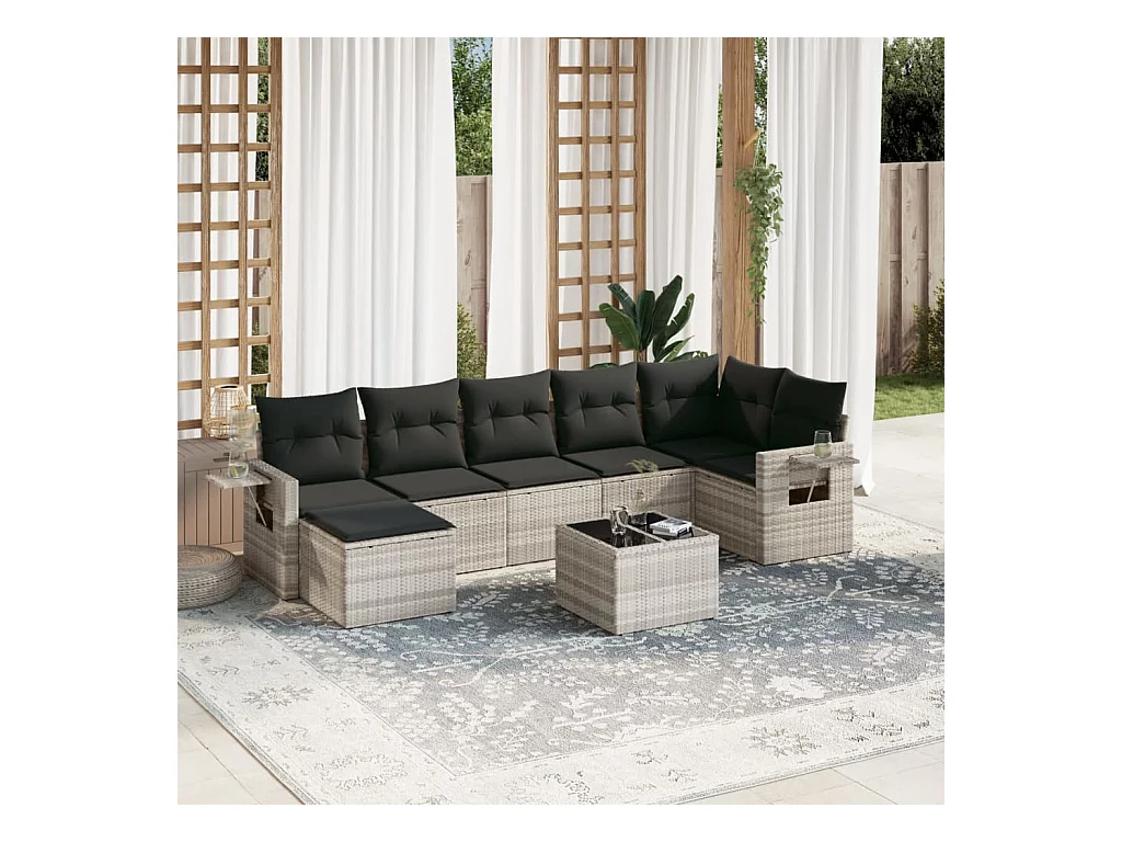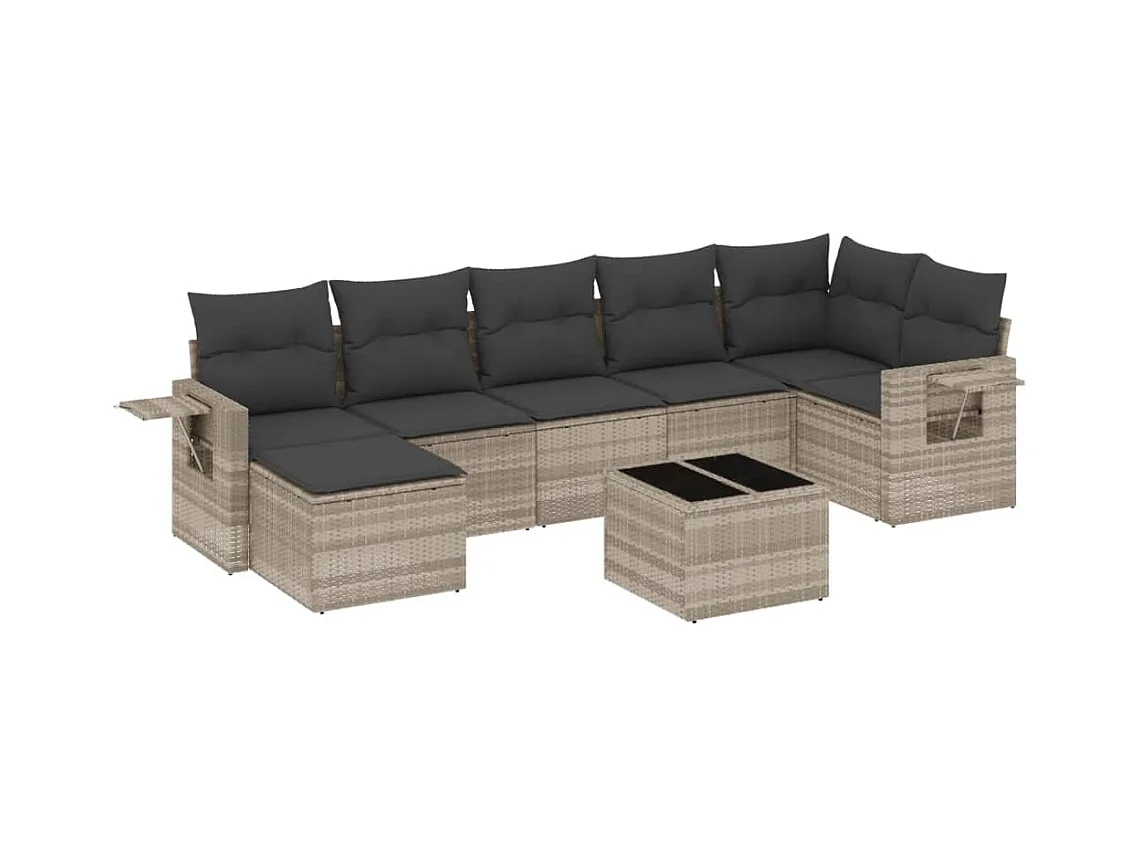 8-delige Loungeset met kussens poly rattan lichtgrijs