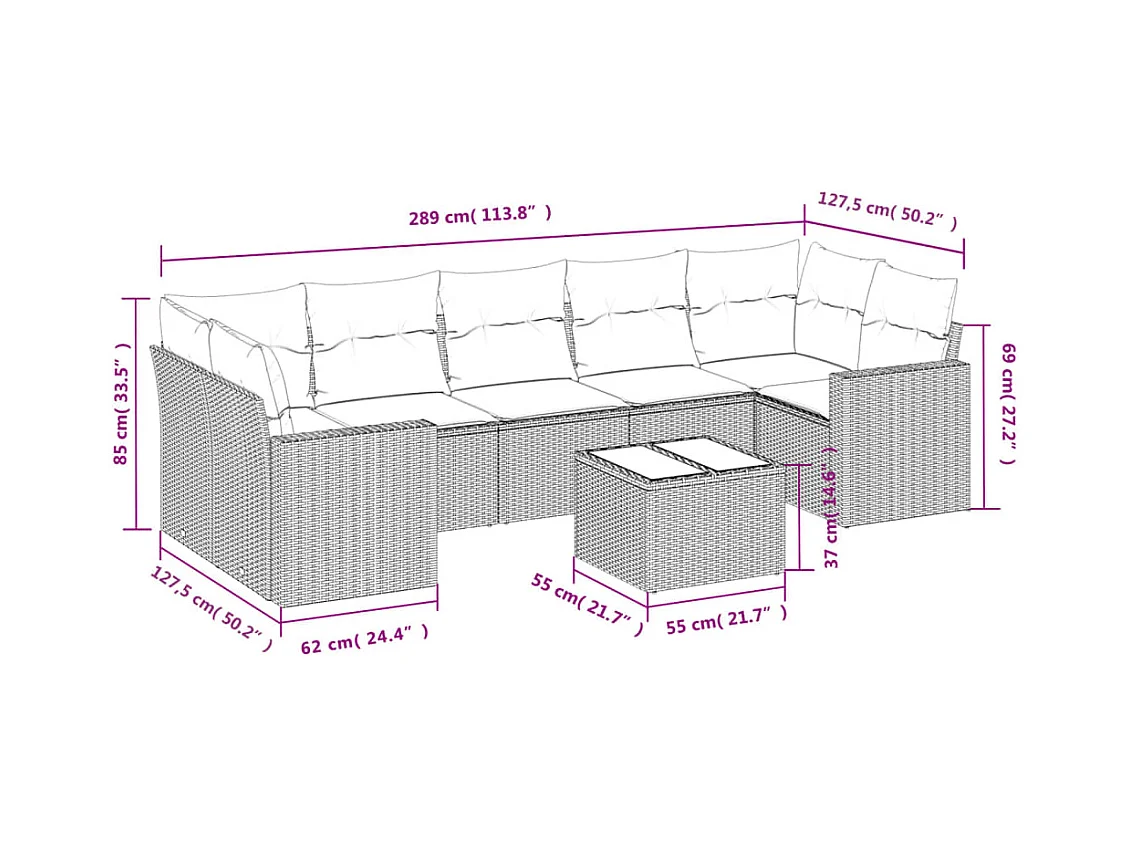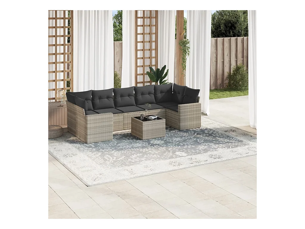 8-delige Loungeset met kussens poly rattan lichtgrijs
