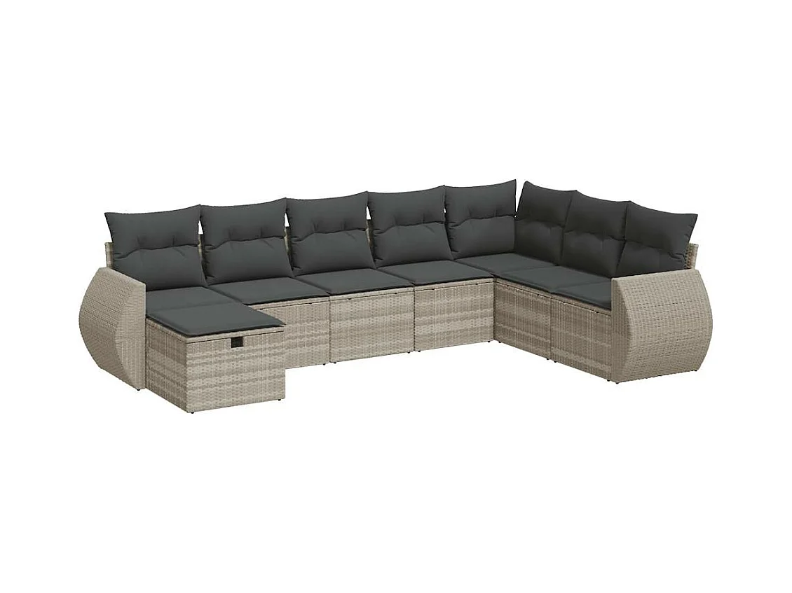 8-delige Loungeset met kussens poly rattan lichtgrijs