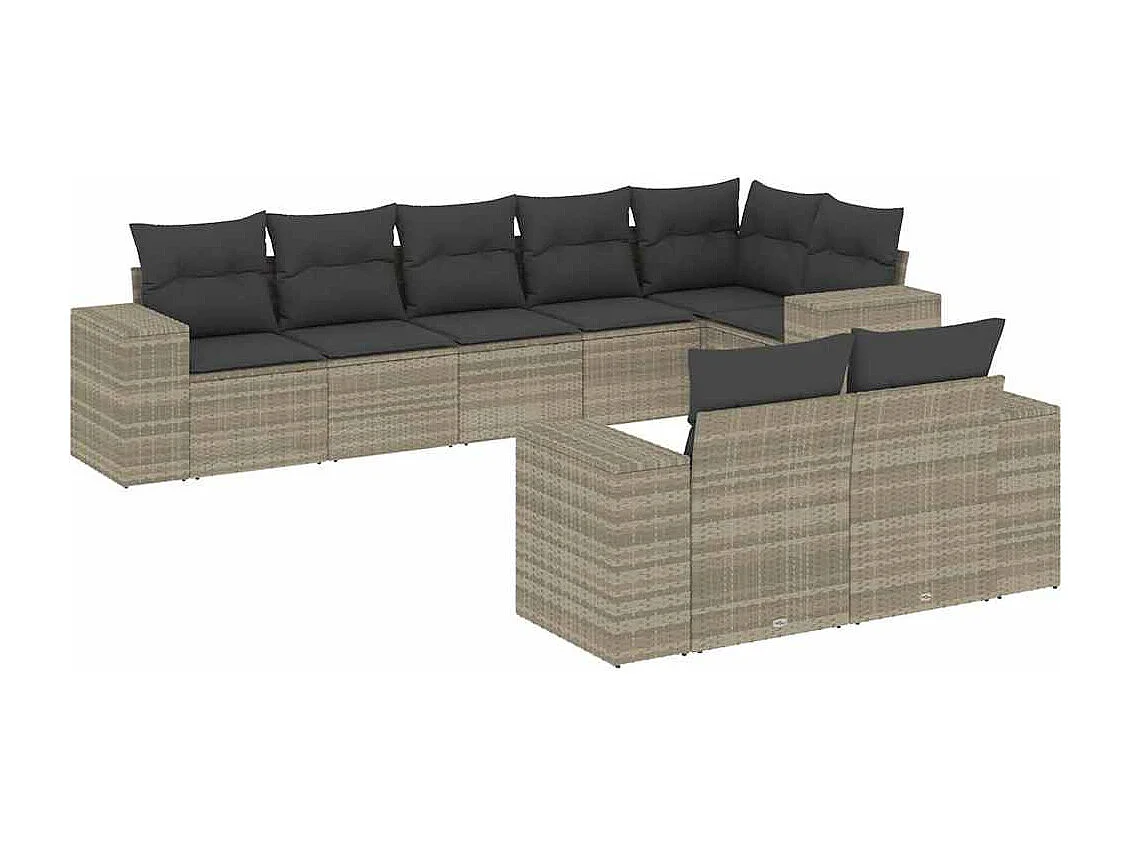 9-delige Loungeset met kussens poly rattan lichtgrijs