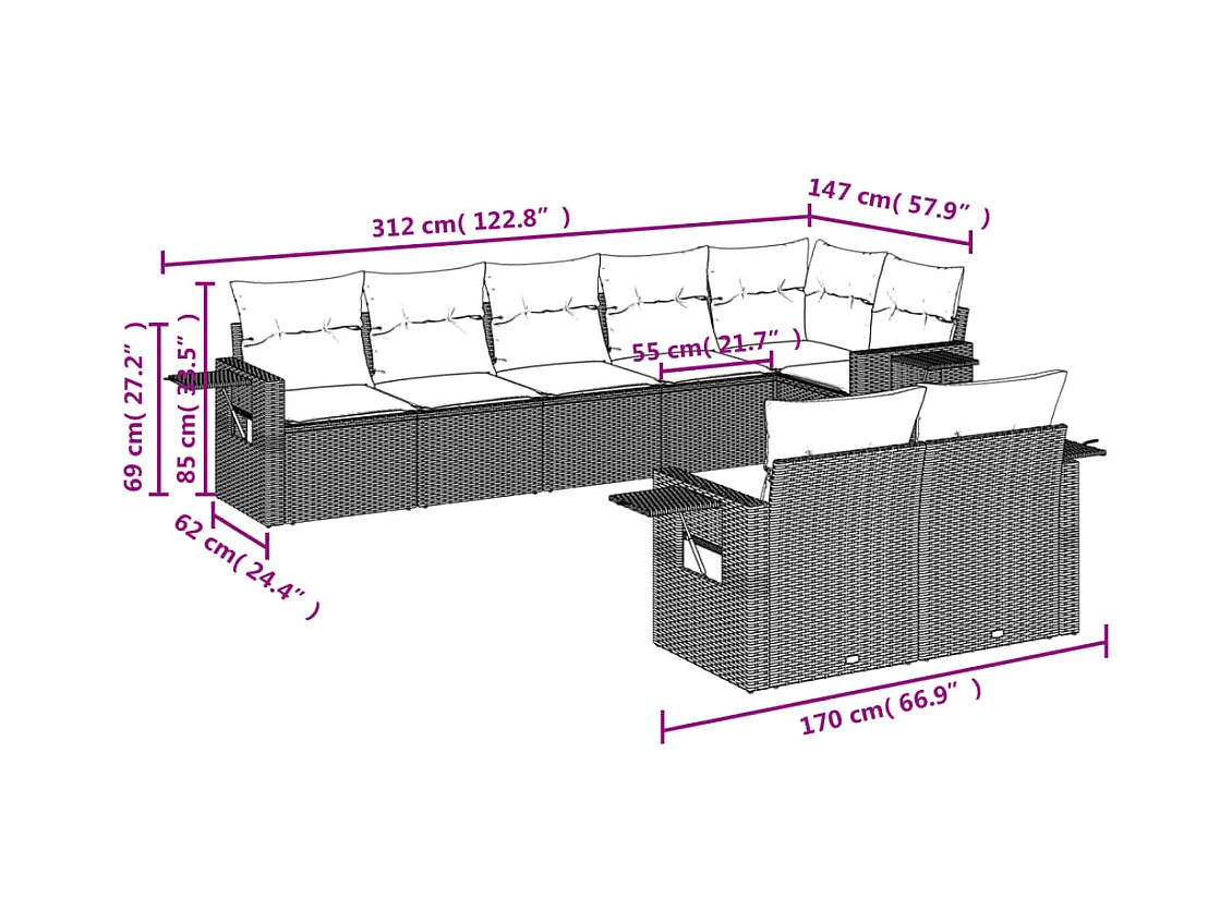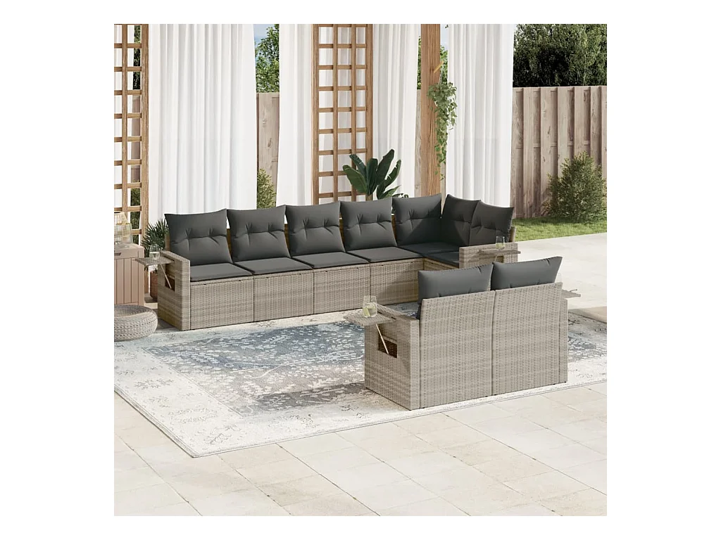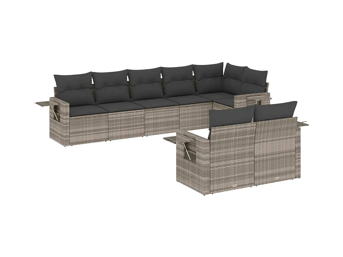 8-delige Loungeset met kussens poly rattan lichtgrijs
