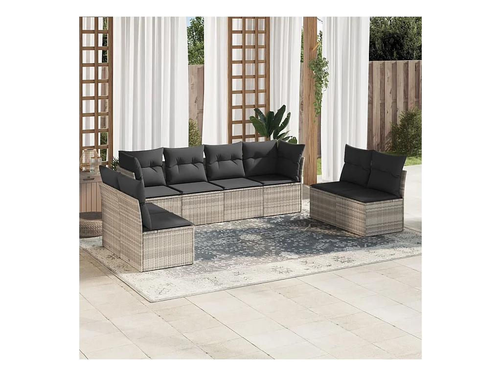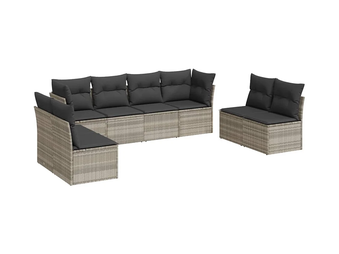 8-delige Loungeset met kussens poly rattan lichtgrijs