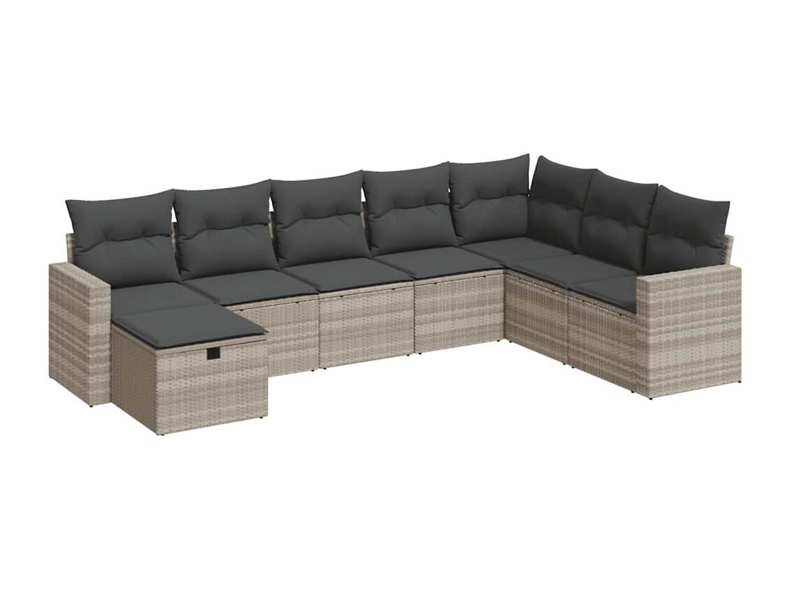 8-delige Loungeset met kussens poly rattan lichtgrijs