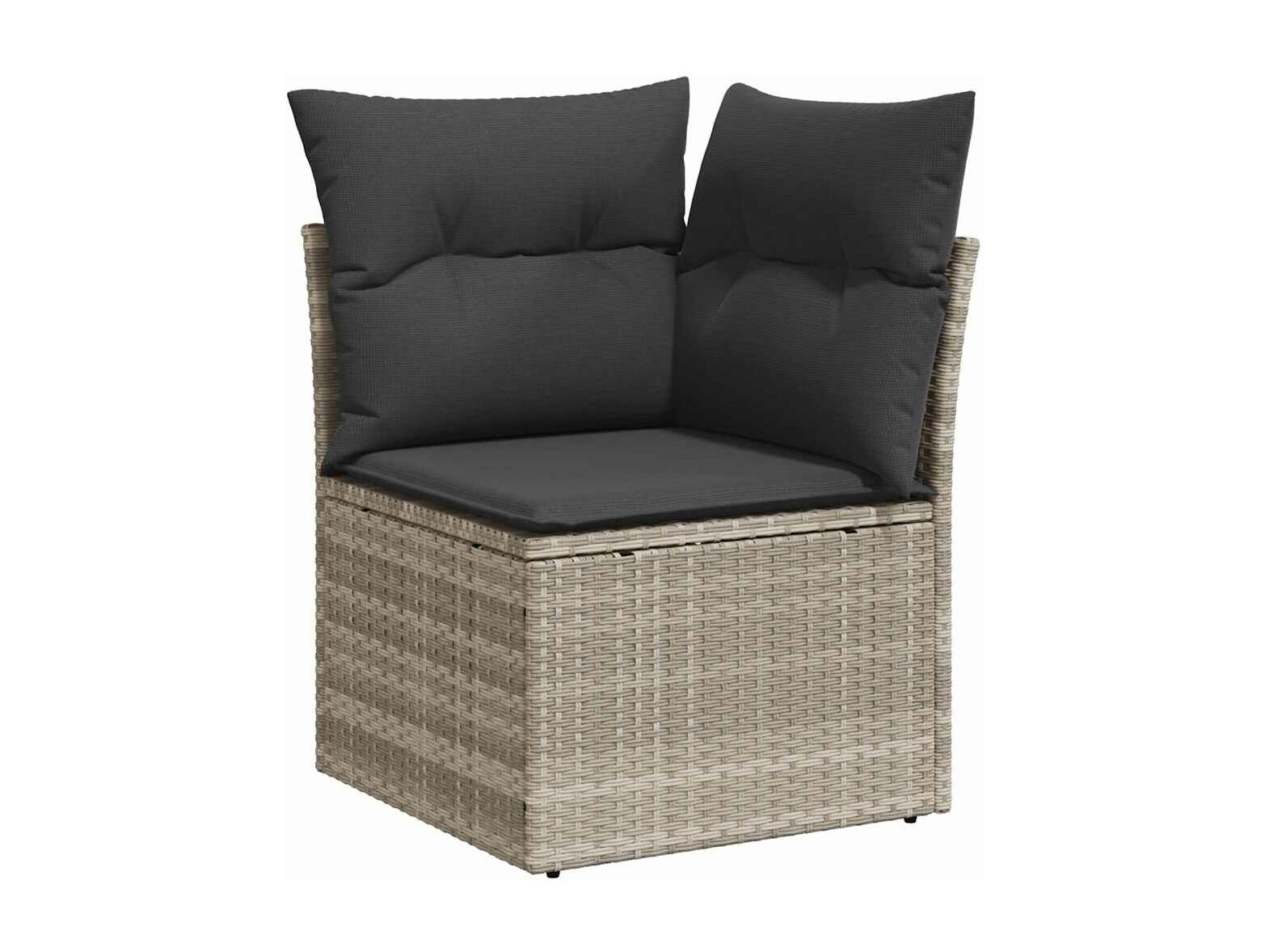 9-delige Loungeset met kussens poly rattan lichtgrijs